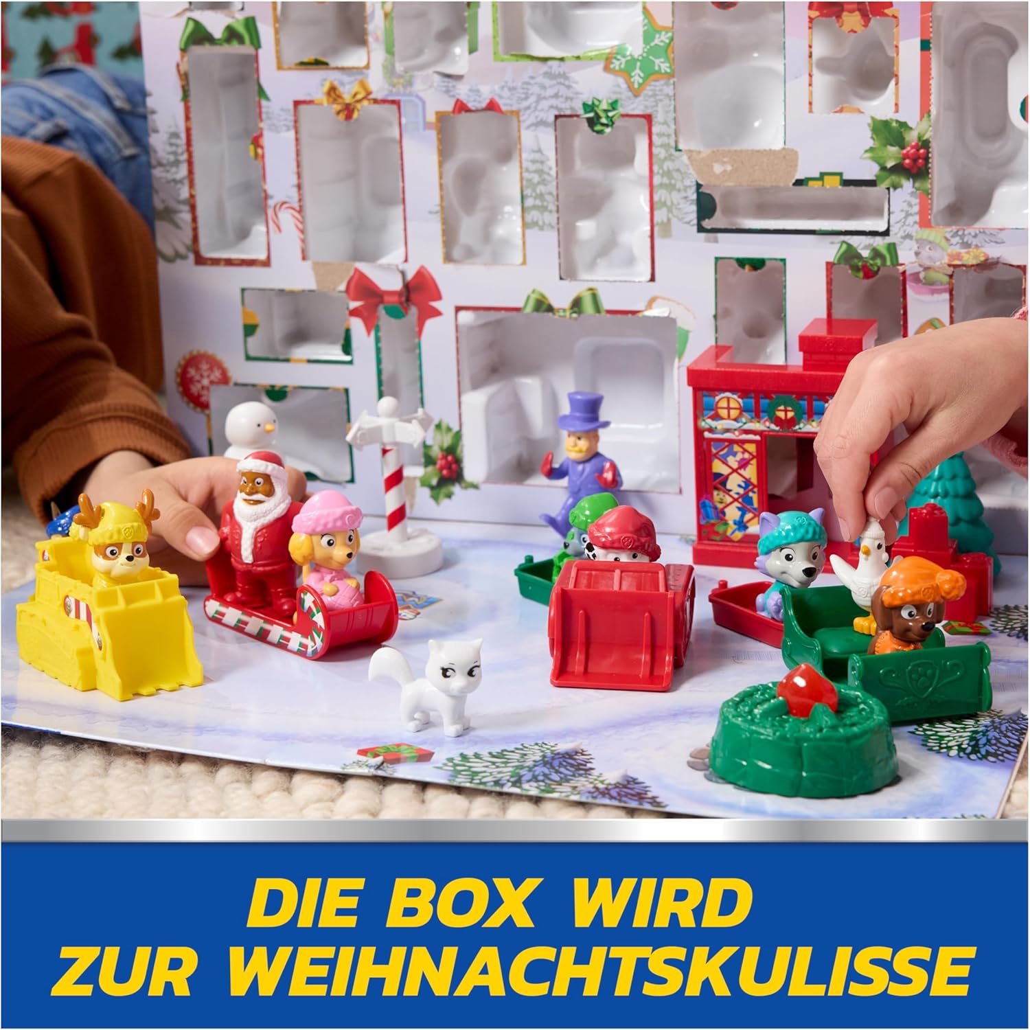 • Адвент календарът включва не само Дядо Коледа и кмета Хъмдингер, но и Чейс, Маршал, Скай, Ръбъл, Роки, Зума и други популярни пухкави приятели от PAW Patrol в очарователни зимни облекла.