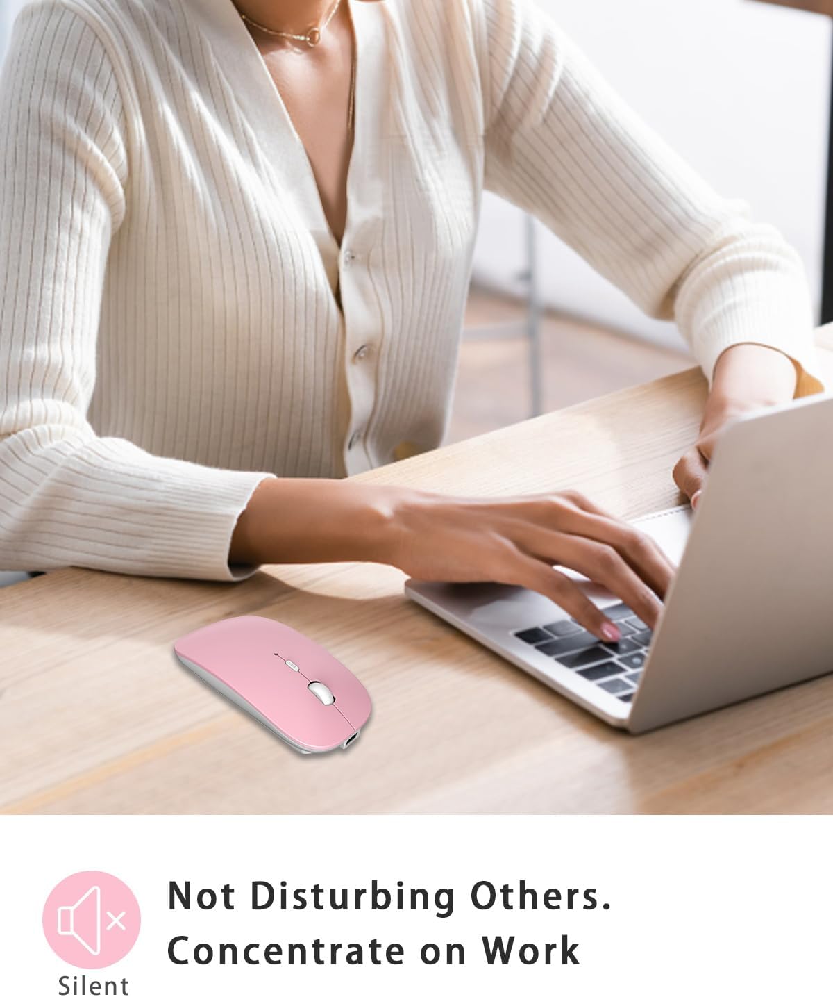 Мини безжичната мишка намалява шума с до 90%, така че никога няма да безпокоите другите, когато я използвате, независимо къде се намирате. Подходяща за някой, който трябва да работи на тихо място.