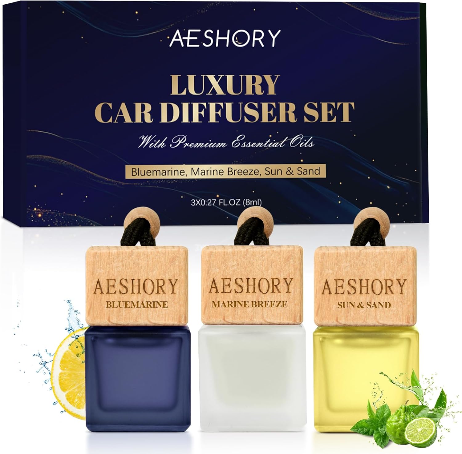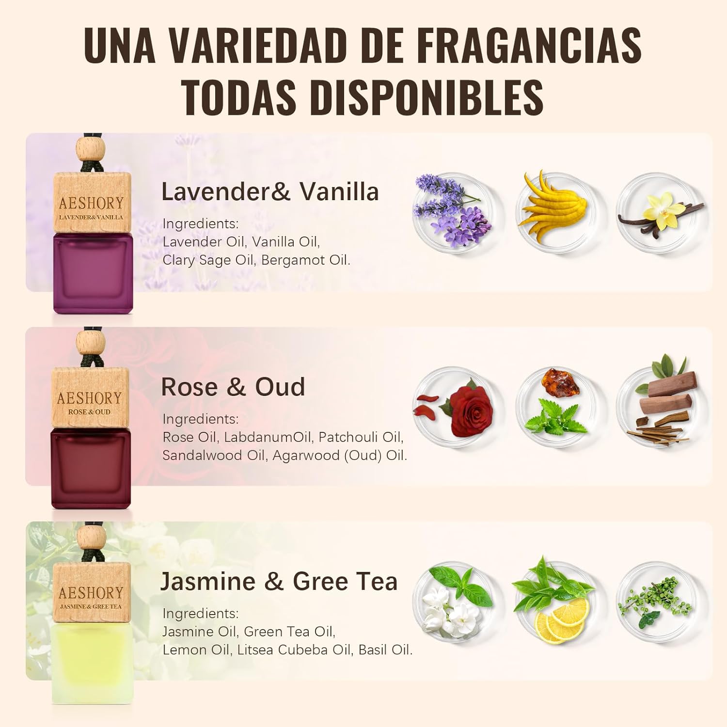 Aeshory 3 x 8ml Ароматизатор за кола, Флорална колекция, Висящ дифузер с държач, Ароматизатор за интериор, Автоматични аромати за кола за такси, офис и дом