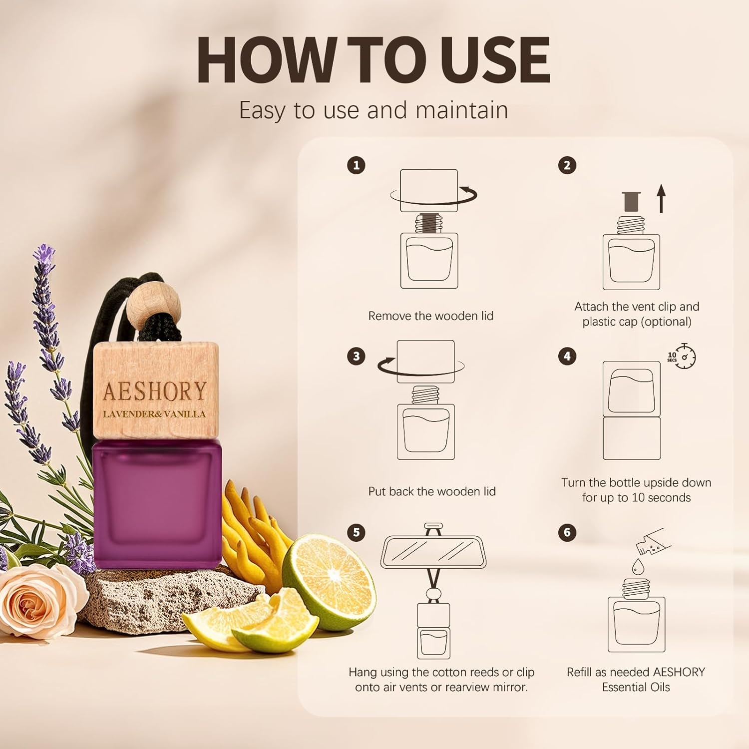 • ИДЕАЛЕН ОСВЕЖИТЕЛ ЗА ВЪЗДУХ ЗА КОЛА: Всяка бутилка освежител за въздух съдържа 8 мл и осигурява свеж аромат за поне 30 дни. Той ефективно маскира или елиминира неприятните миризми в колата, като например миризми на храна, домашни любимци, бензин или дим, осигурявайки приятна атмосфера по всяко време. Подобрете настроението си и намалете стреса по време на натоварени работни дни, дълги шофирания, бизнес пътувания и други.