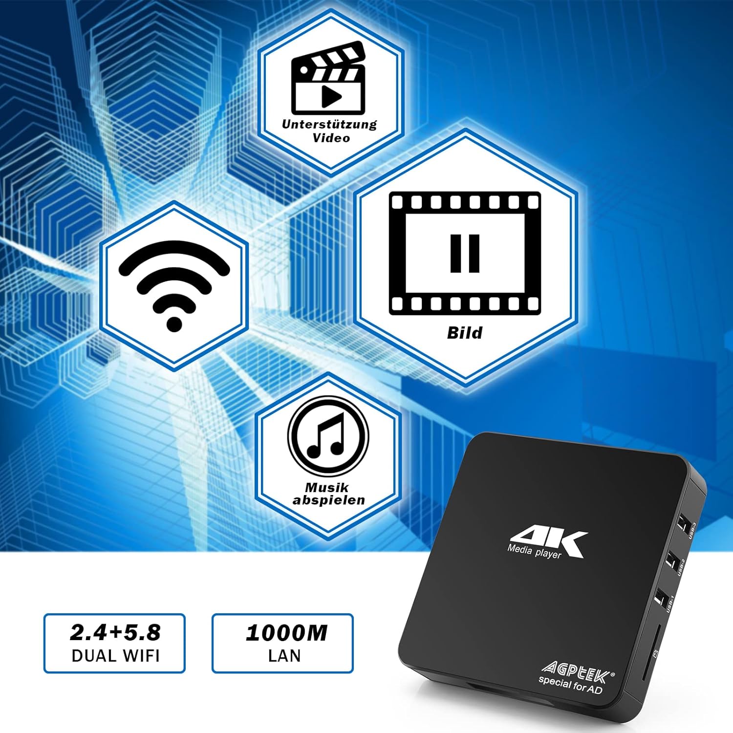 • 4K @ 60 Hz медиен плейър: Изживейте пълноценни 4K @ 60 Hz видеоклипове в този цифров медиен плейър. Работи с кодеци MKV, AVI, TS/TP, MP4/M4V, MOV, VOB, M2TS или MPEG2/4, поддържа най-новите видео формати като H.265/HEVC до резолюция 4096 x 2304p при 60 fps, Снимки: JPG, JPEG, BMP, GIF, PHOTOS.NG. Музика: MP3, WMA, OGG, FLAC, APE, AAC и др.; Може да възпроизвежда един файл до 4GB - 30GB (NTFS)