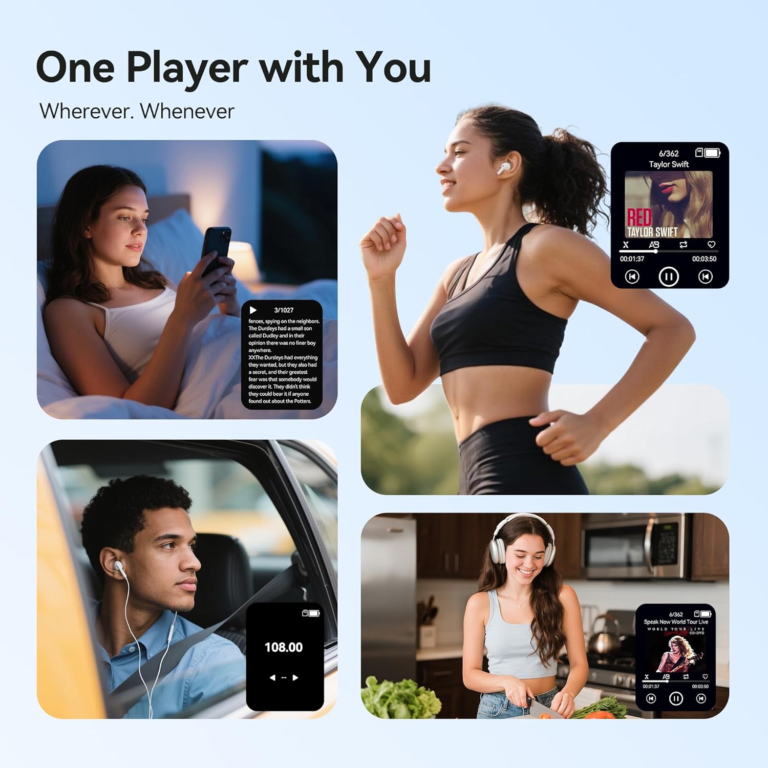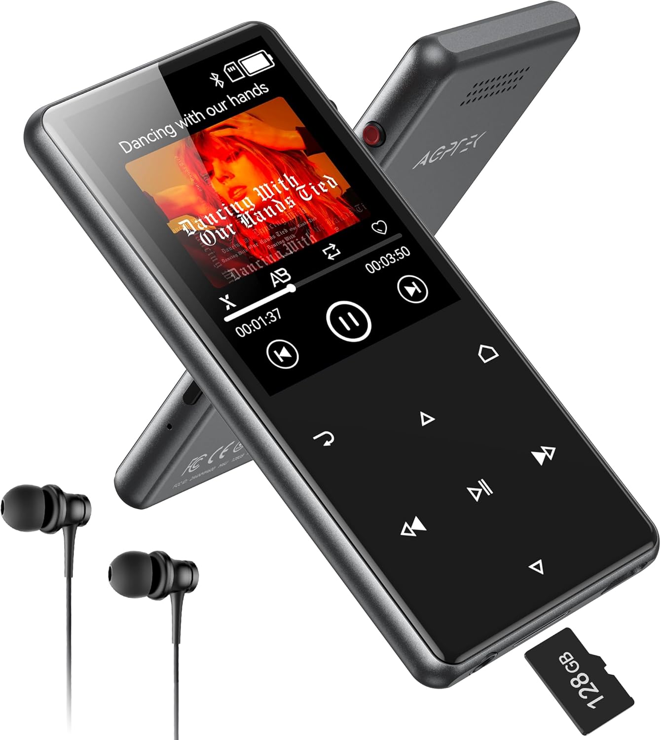 AGPTEK 64GB MP3 плейър с Bluetooth 5.4, M6 2.4-инчов музикален плейър с едно щракване, черен