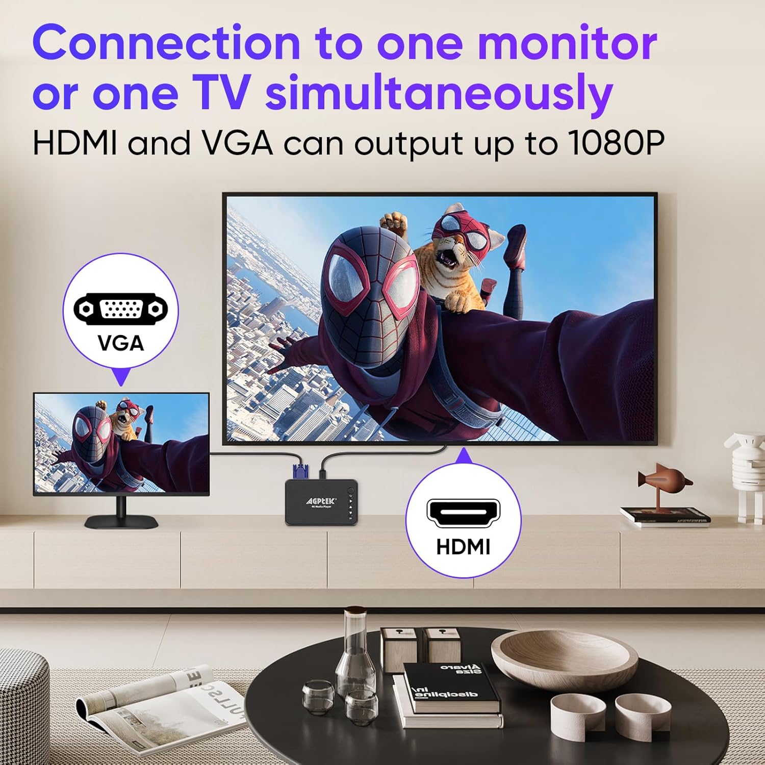 Es verfügt über einen 1080P HDMI-Ausgang zum Senden von Video und Audio sowie AV-Ausgang für die Verwendung mit analogen Fernsehern