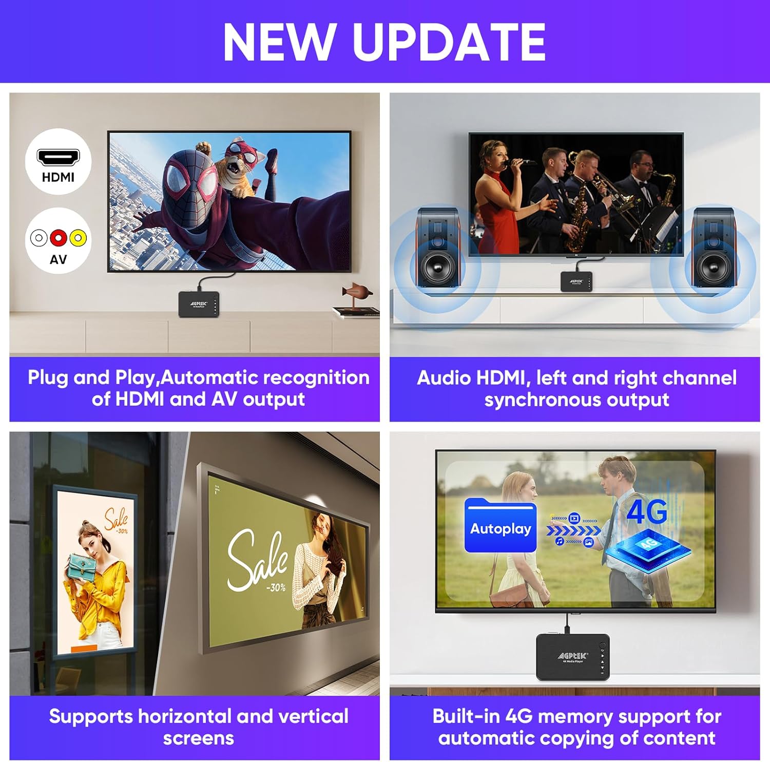 Dieser Mini-Mediaplayer ist vorteilhaft für diejenigen, die gerne reisen. Wenn Sie sich in einem Hotelzimmer für die Woche mit nichts als einem einfachen Fernseher befinden, können Sie einen Mini Media Player an den Hotelfernseher anschließen und Ihre Videos auf USB-Laufwerk/SD-Karte genießen, ohne Taschen voller DVDs und CDs tragen zu müssen.