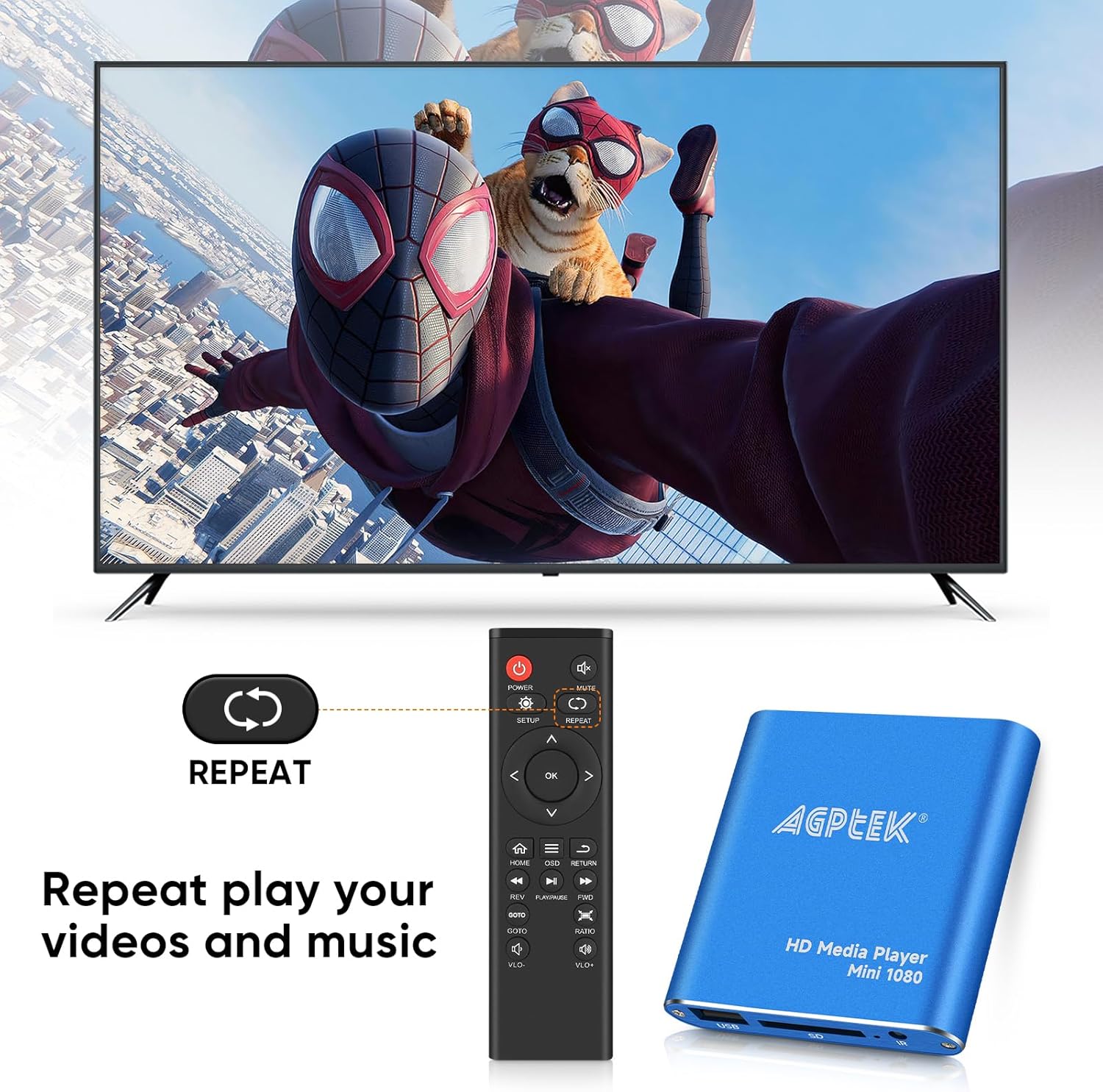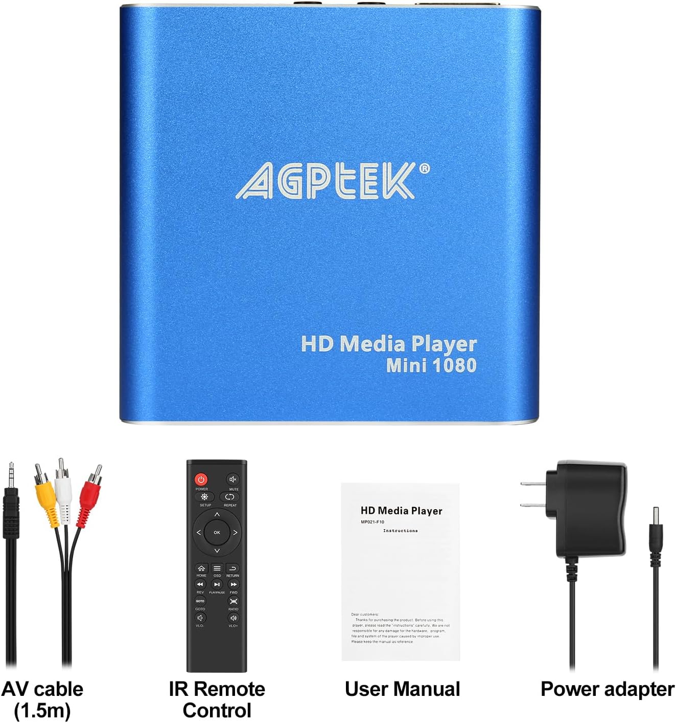 AGPTEK Mini 1080P Full HD цифров медиен плейър с дистанционно управление за MP3, WMA, OGG, AAC, FLAC, APE, AC3, DTS, ATRA