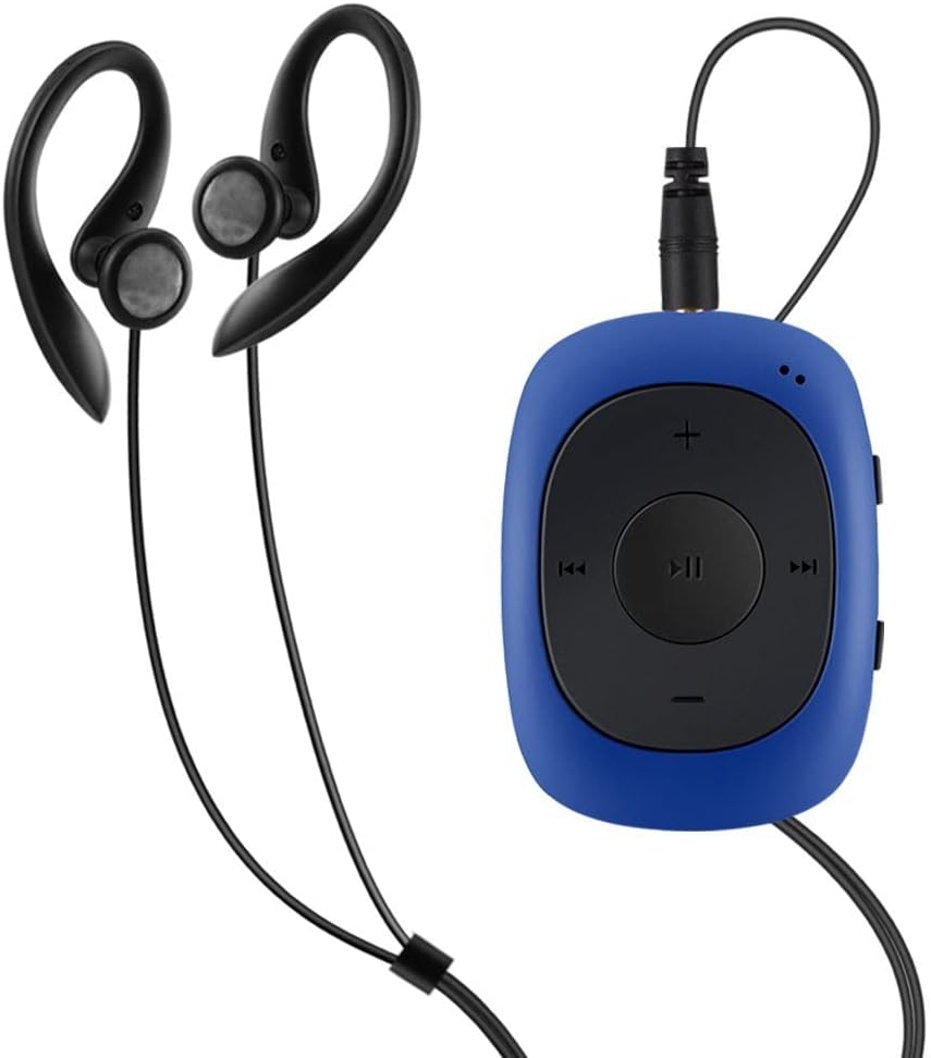 AGPTEK Mini Clip 8GB MP3 плейър със слушалки и силиконов калъф, лек спортен музикален плейър с 5 бутона и 2 бутона за превключване на функции (опаковка за многократна употреба) син