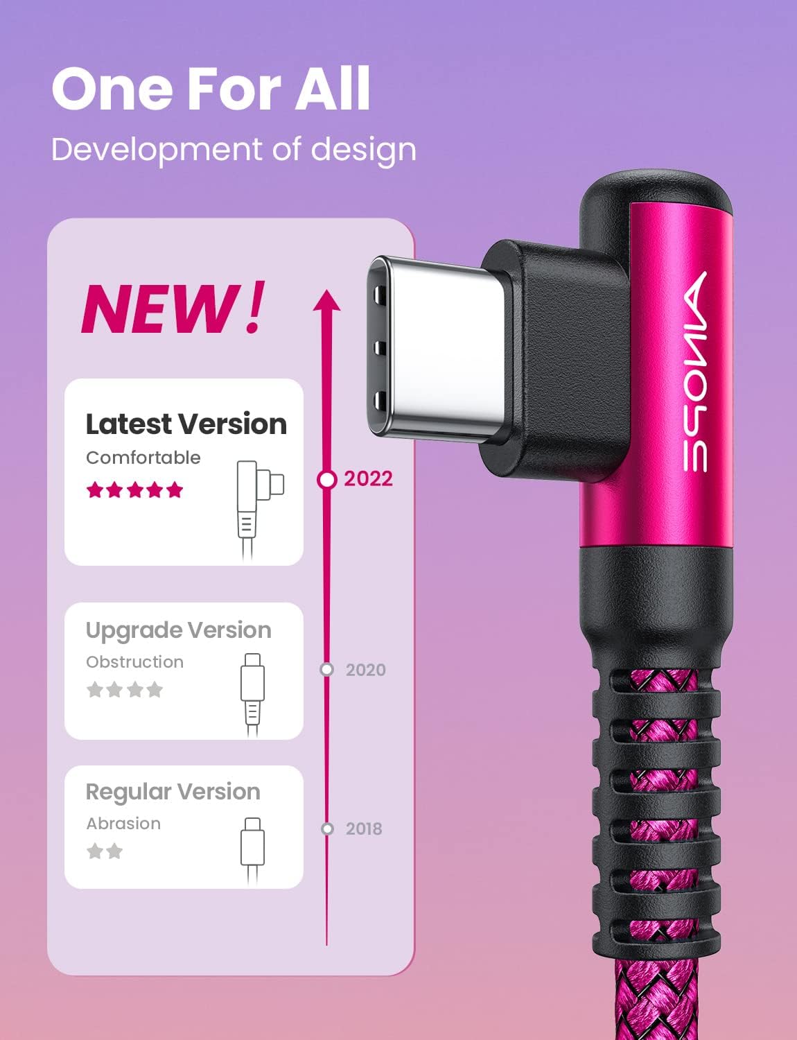 • Подобрен ексклузивен дизайн с десен ъгъл: Този USB-C кабел с десен ъгъл е с иновативен 90-градусов „L“ дизайн. Той е лесен за употреба и е по-удобен за играене на игри, гледане на видеоклипове, четене на електронни книги по време на зареждане. Забележка: Дебелината на съвместимия порт за зареждане на калъфа за мобилен телефон е 5,5 мм.