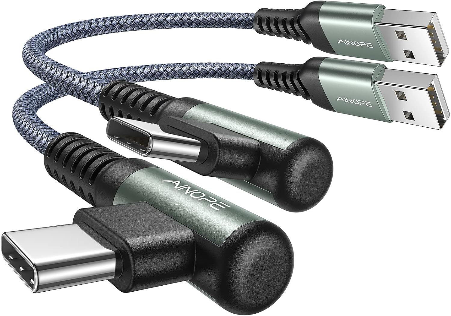 AINOPE USB C кабел, 2 броя 0.2 м 3.1A Type C зарядно за бързо зареждане, прав ъгъл, издръжлив найлонов оплетен USB C кабел за зареждане, съвместим с Galaxy S22, S21 Plus, S20, Note 10 9 LG