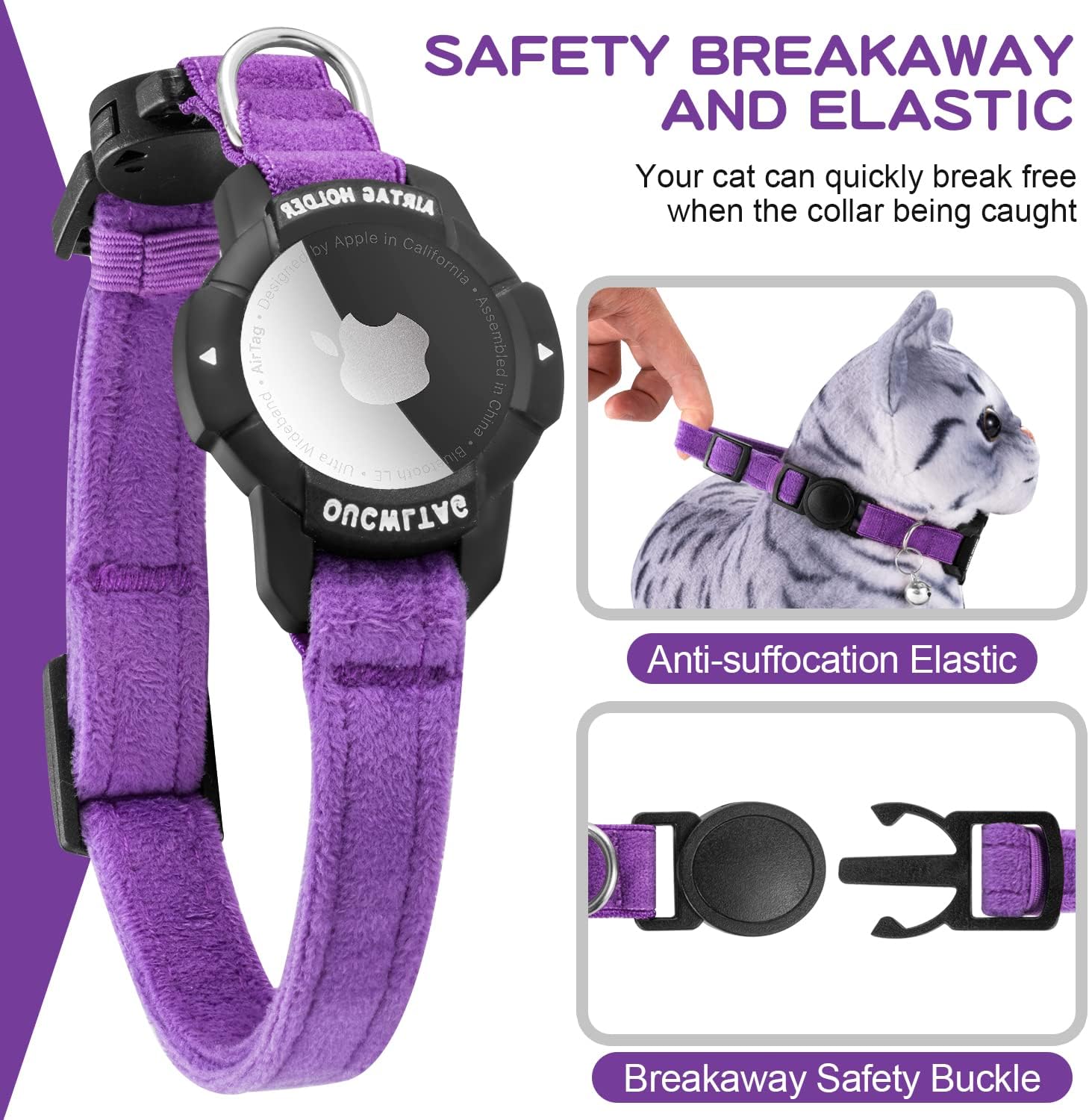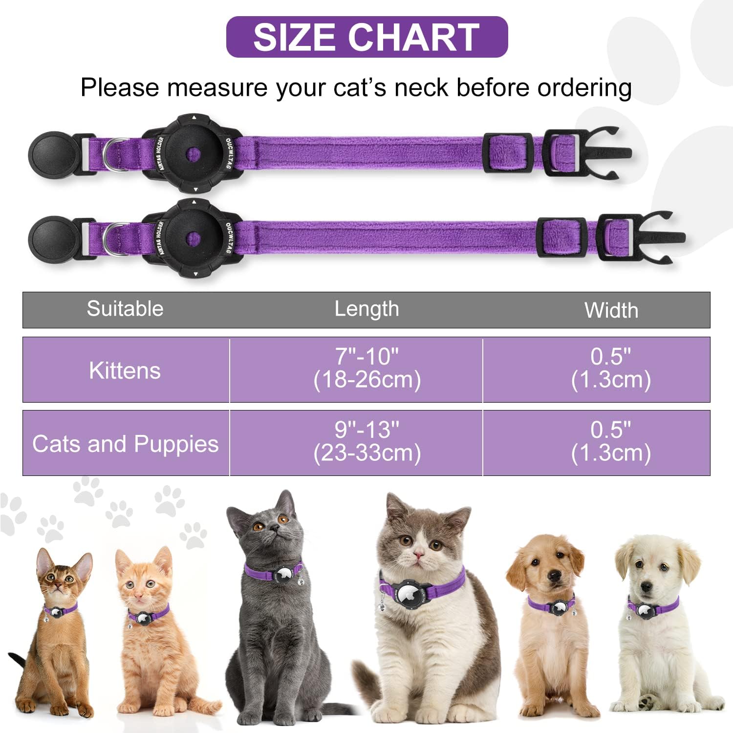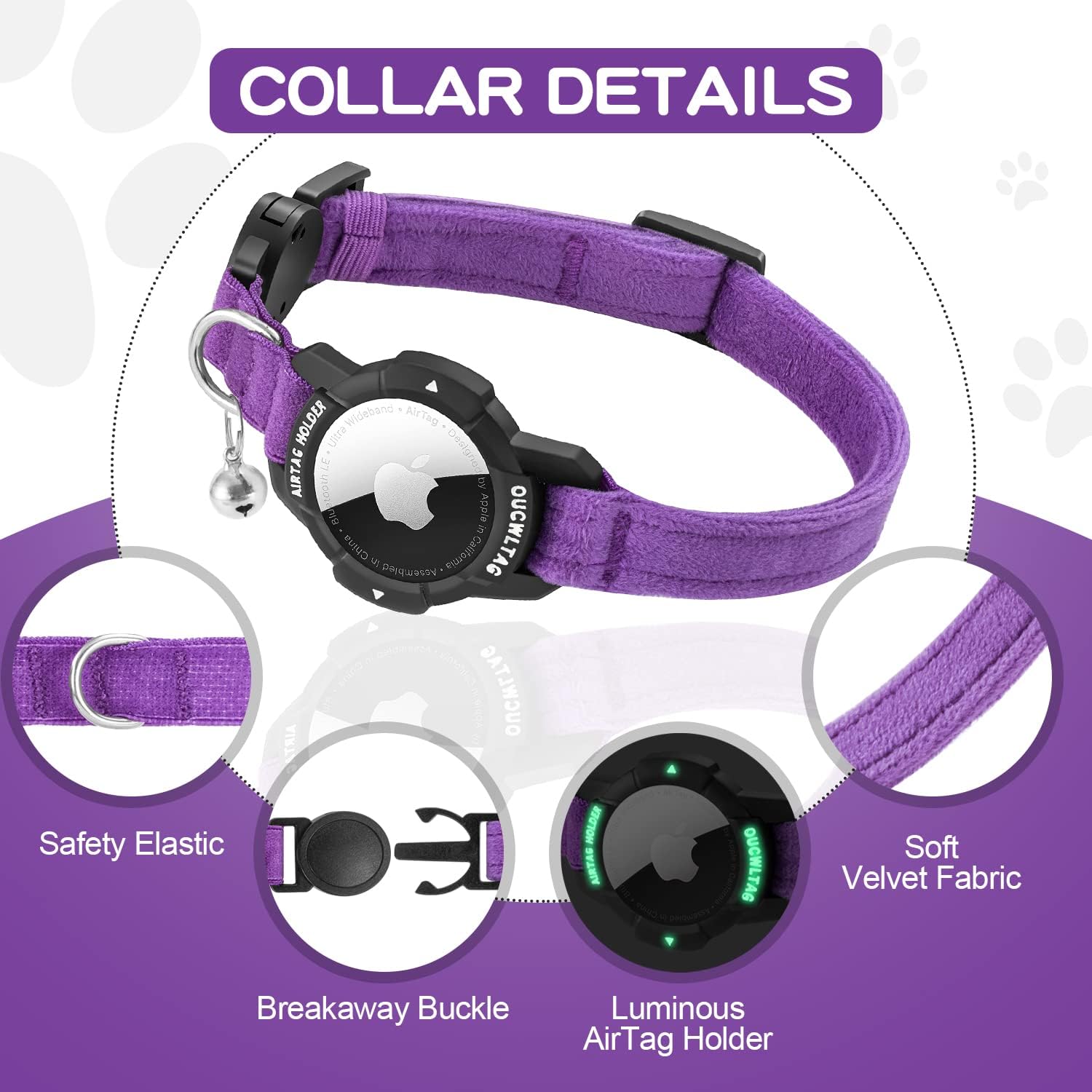 AirTag Котешка каишка със светещ държач за етикет Apple, Котешка каишка с предпазна закопчалка и ластик за котенца, котки и кученца (Котенца 18-26 см, Лилава)