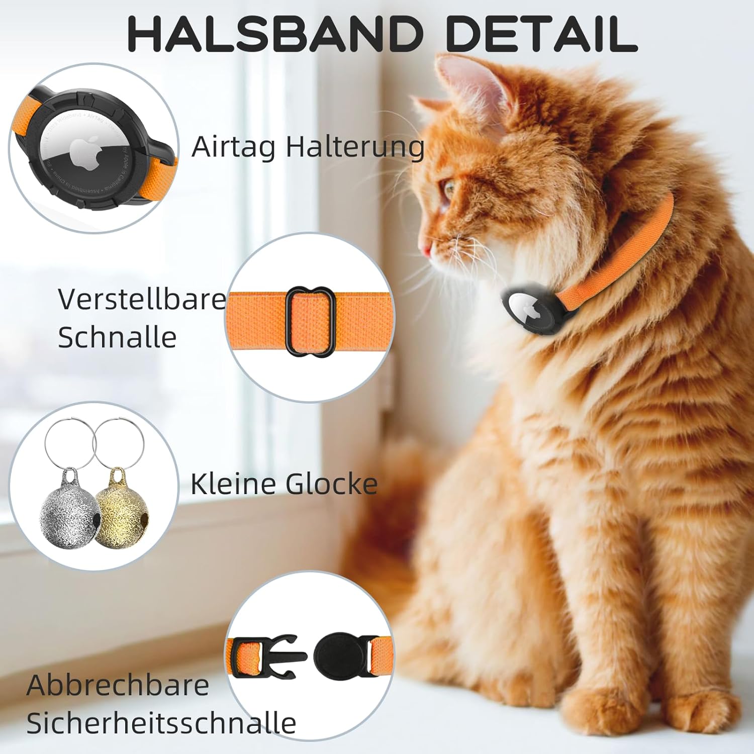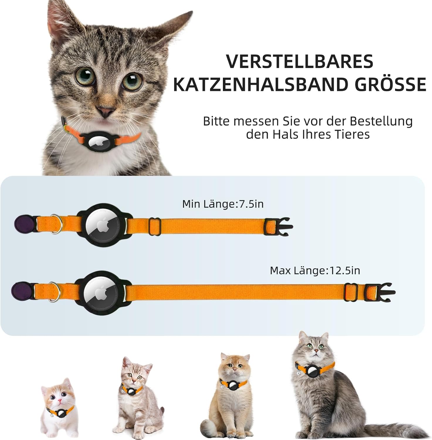 AirTag нашийник за котки, еластичен нашийник за котки със звънец, нашийник за проследяване на котки с калъф Apple Airtag, издръжлив и подходящ за котенца, котки и кученца (оранжев)