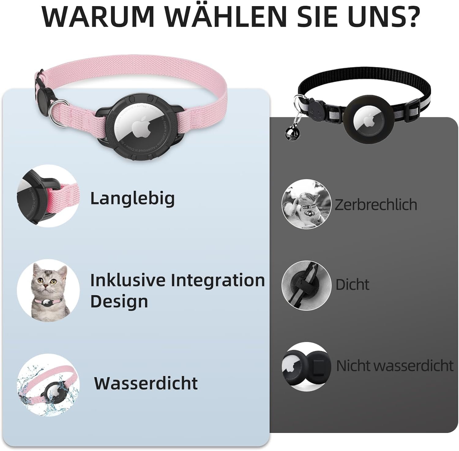 • ПЕРФЕКТНО ПОДХОДЯЩО ЗА AIRTAG Нашата вградена котешка каишка AirTag е специално проектирана да осигури перфектно прилягане към вашето Apple AirTag устройство, за да гарантира неговата защита и да предотврати изгубването или закачането му (Забележка: AirTag не е включен).
