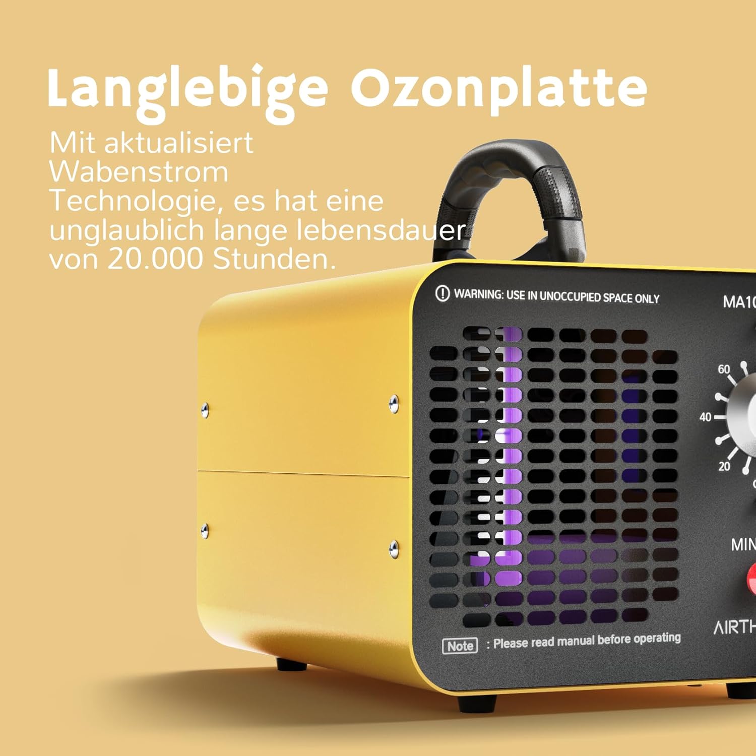 • Преносим и енергоспестяващ: Оборудван с изолираща гумена дръжка, можете да вземете озоновия генератор Airthereal MA5000 със себе си, където и да отидете. Ултра ниска консумация и пестене на енергия.