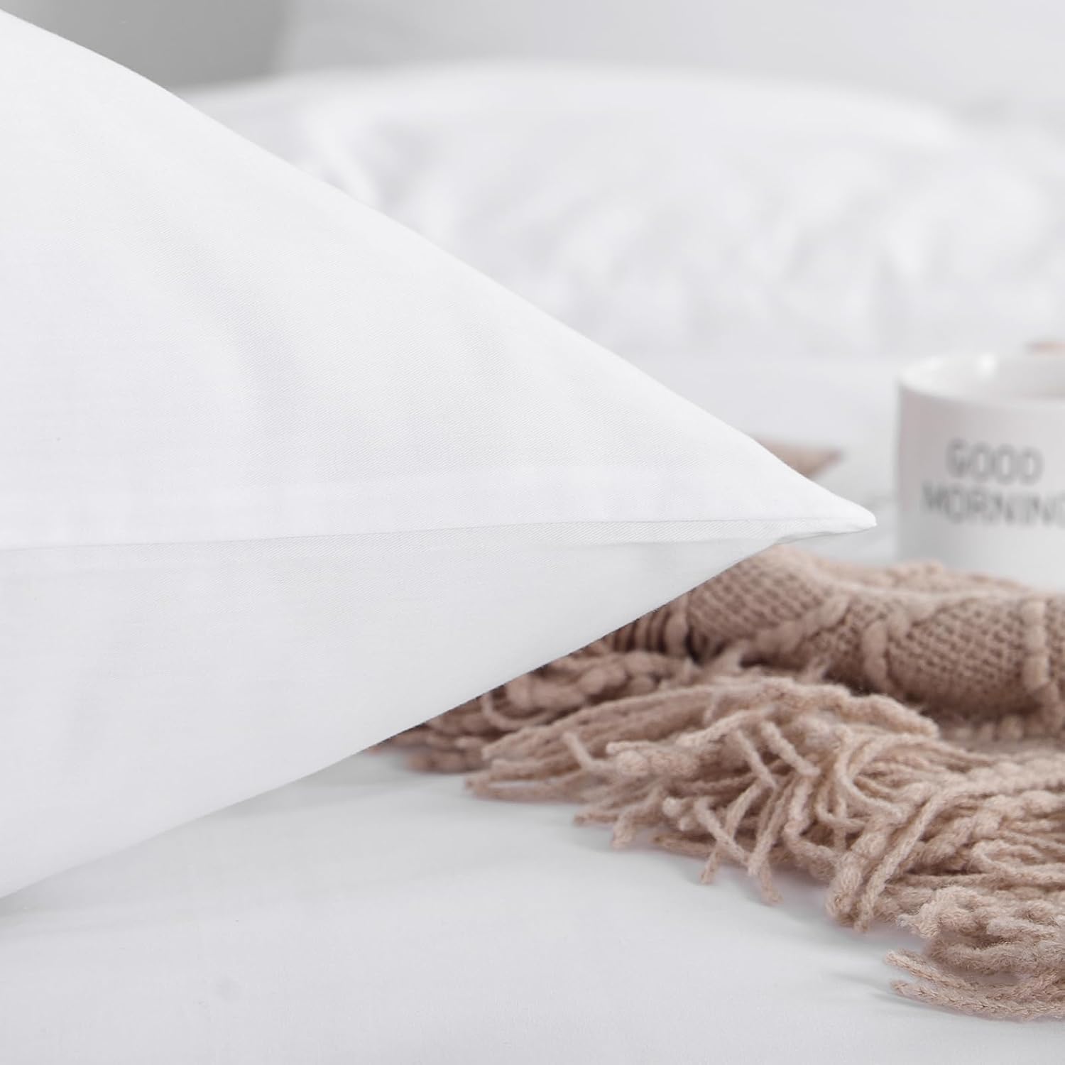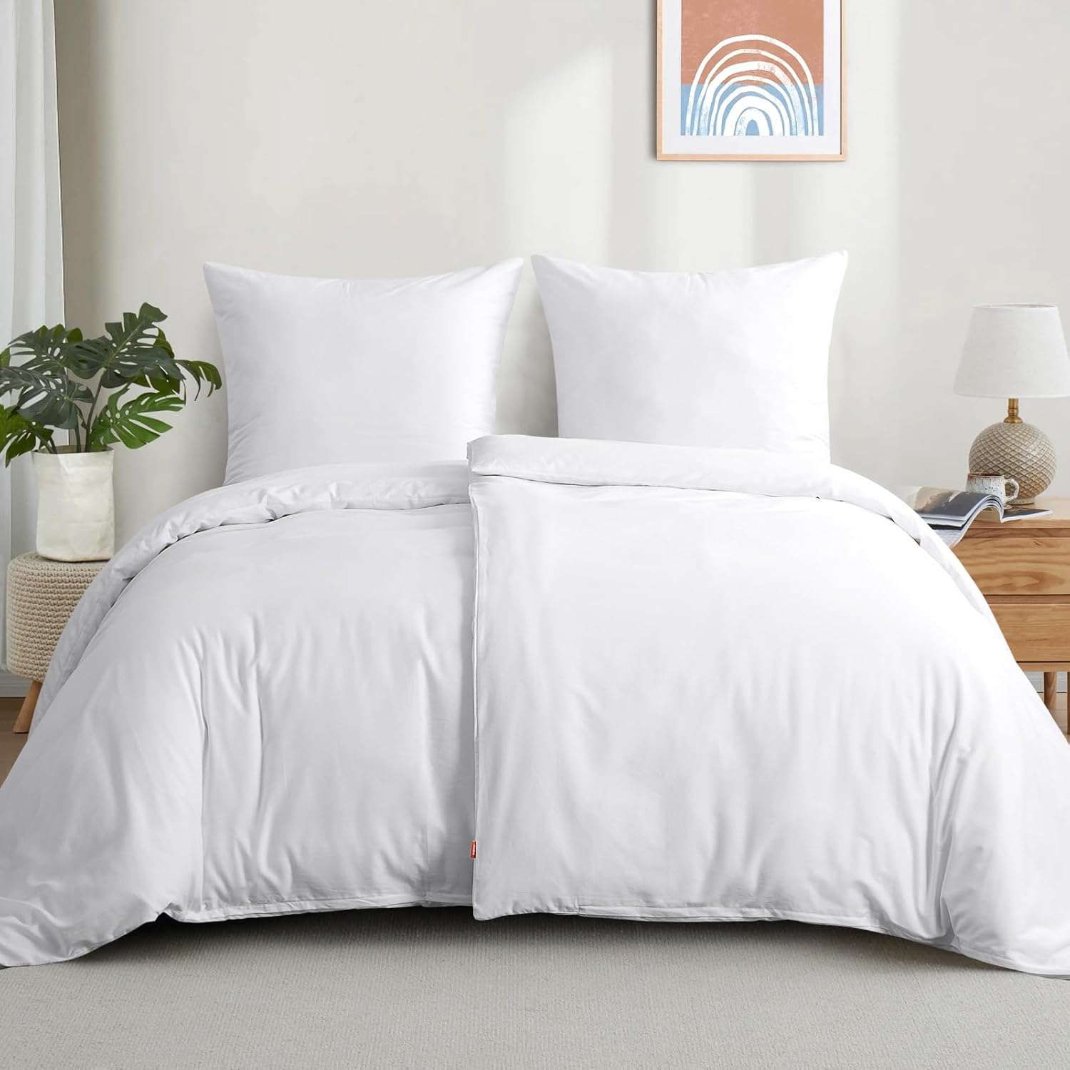 Aisbo 4-частово бяло памучно спално бельо 135 x 200 см, Комплекти спално бельо, Комплект от 2 калъфа за завивки с 2 калъфки за възглавници 80 x 80 см, Мек и дишащ комплект спално бельо с цип