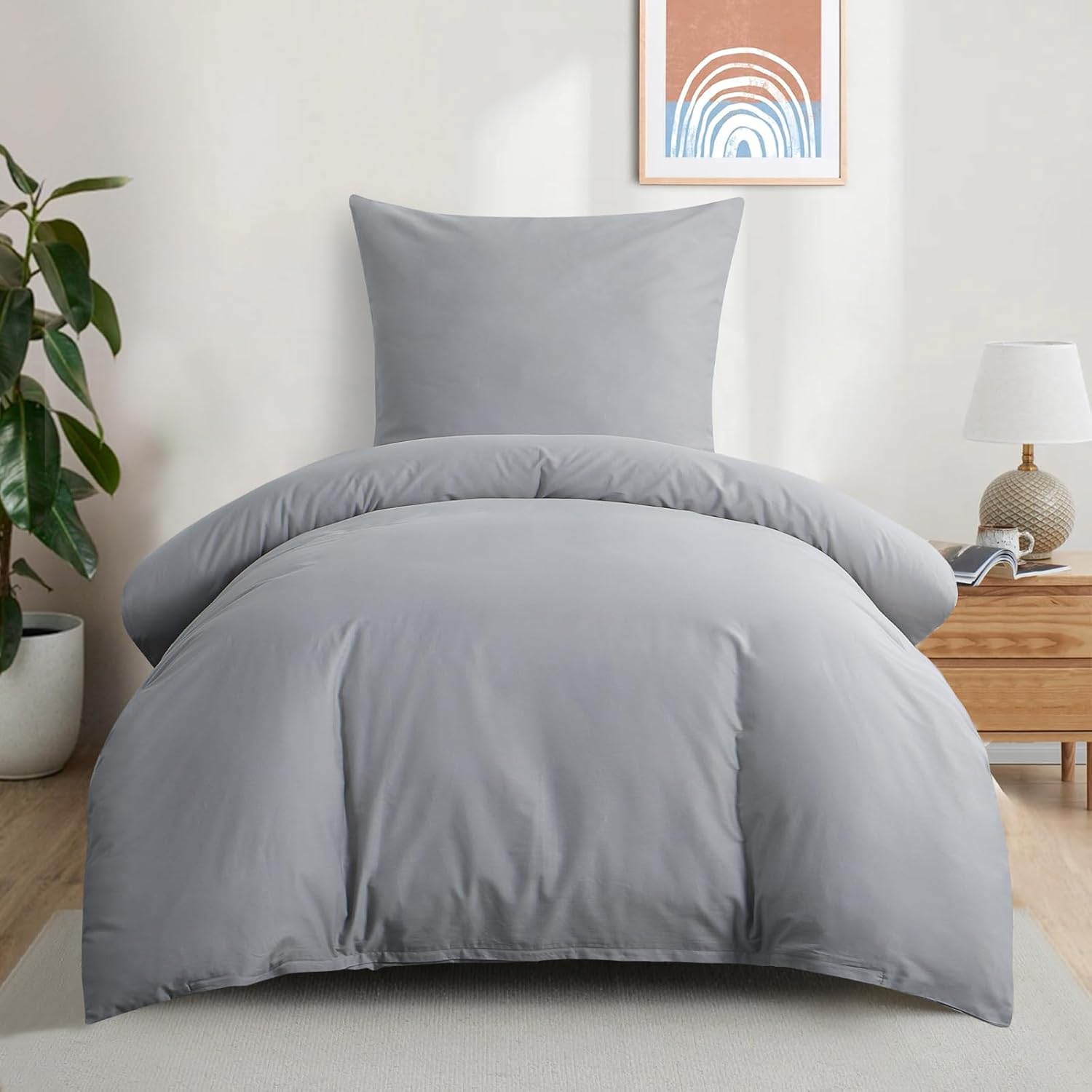 Aisbo Комплект от 2 части, сиво памучно спално бельо, 155 x 220 см, светлосив комплект за завивка с цип, мек и дишащ