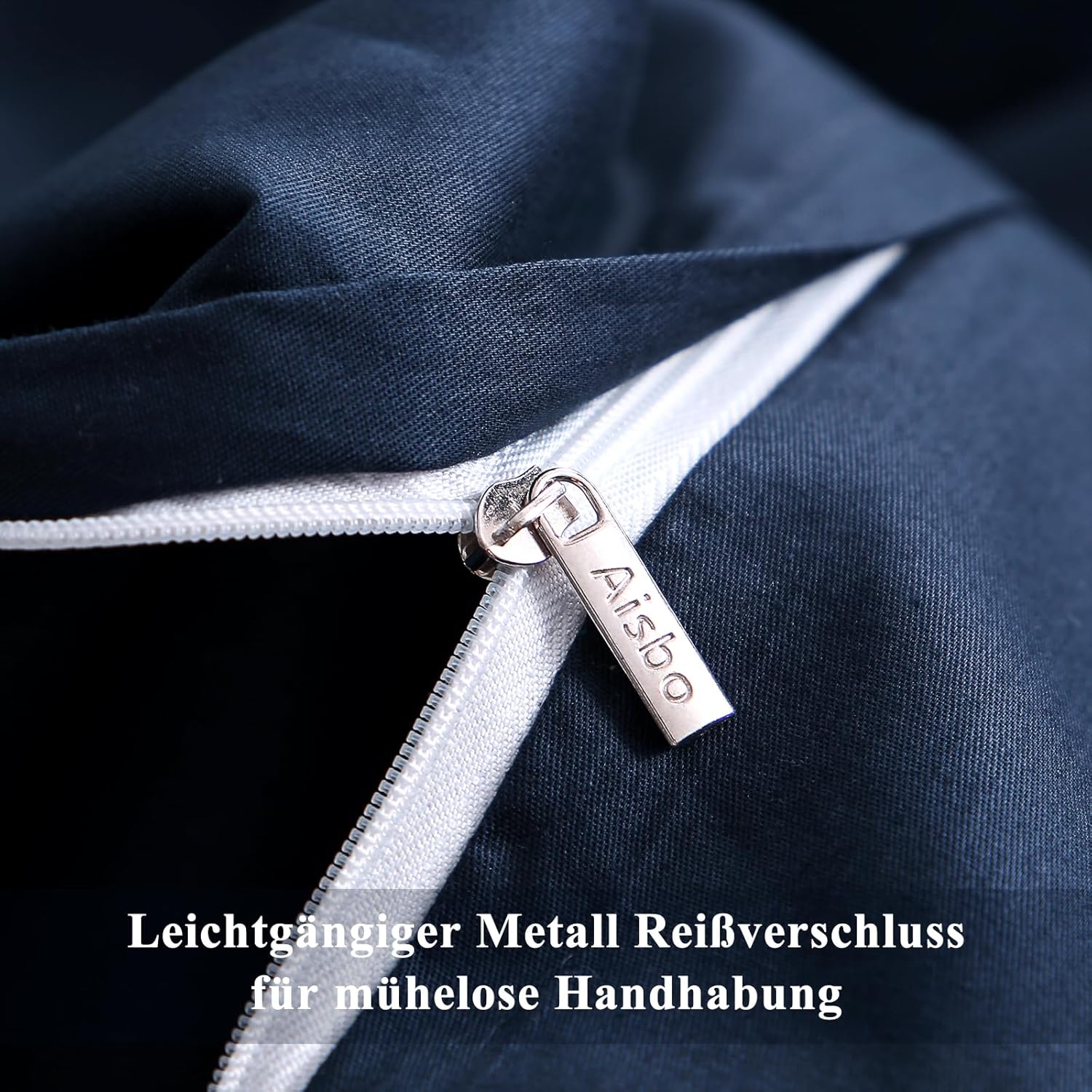 Aisbo Комплект от 2 спални бельа от син памук, 155 x 220 см, с цип, мек и дишащ