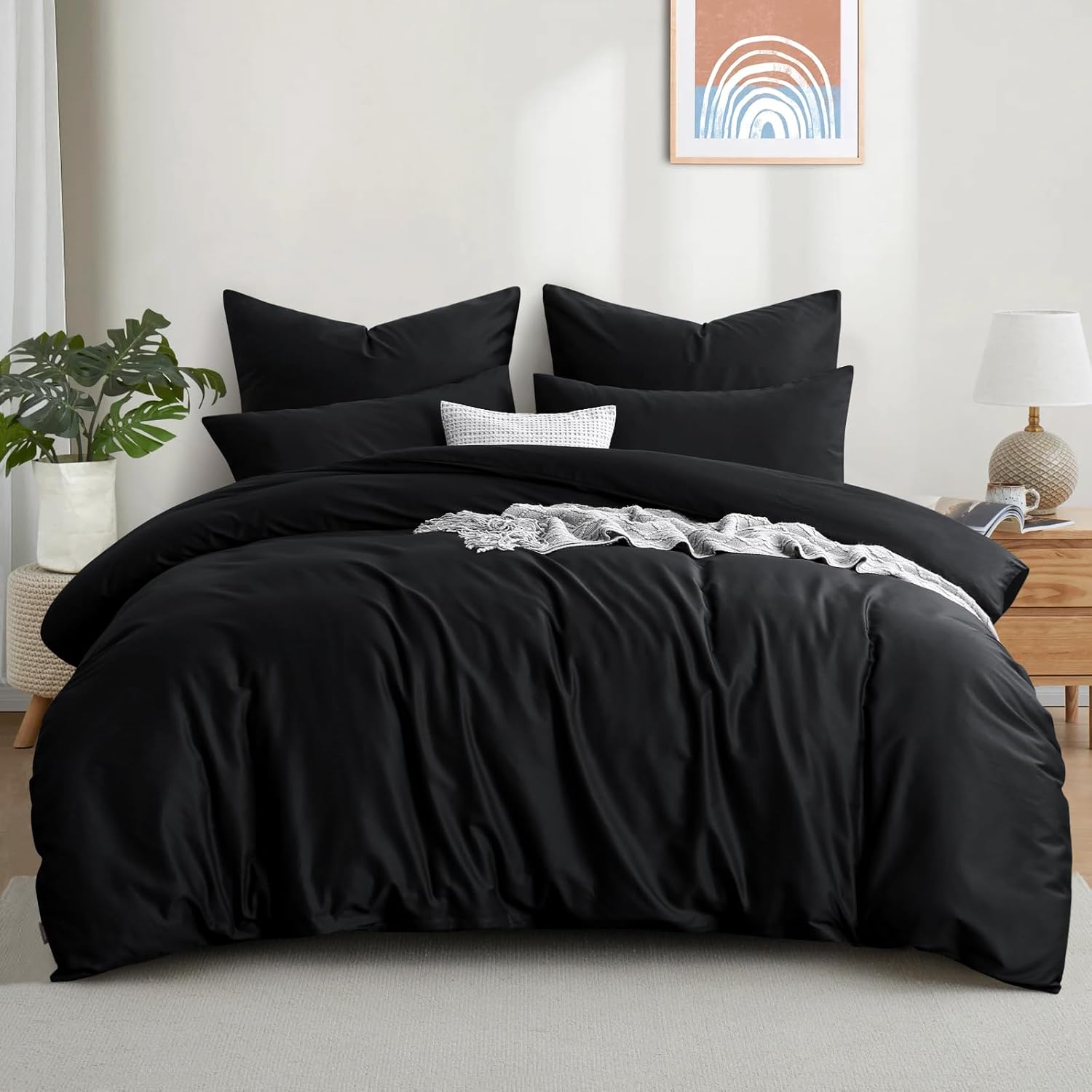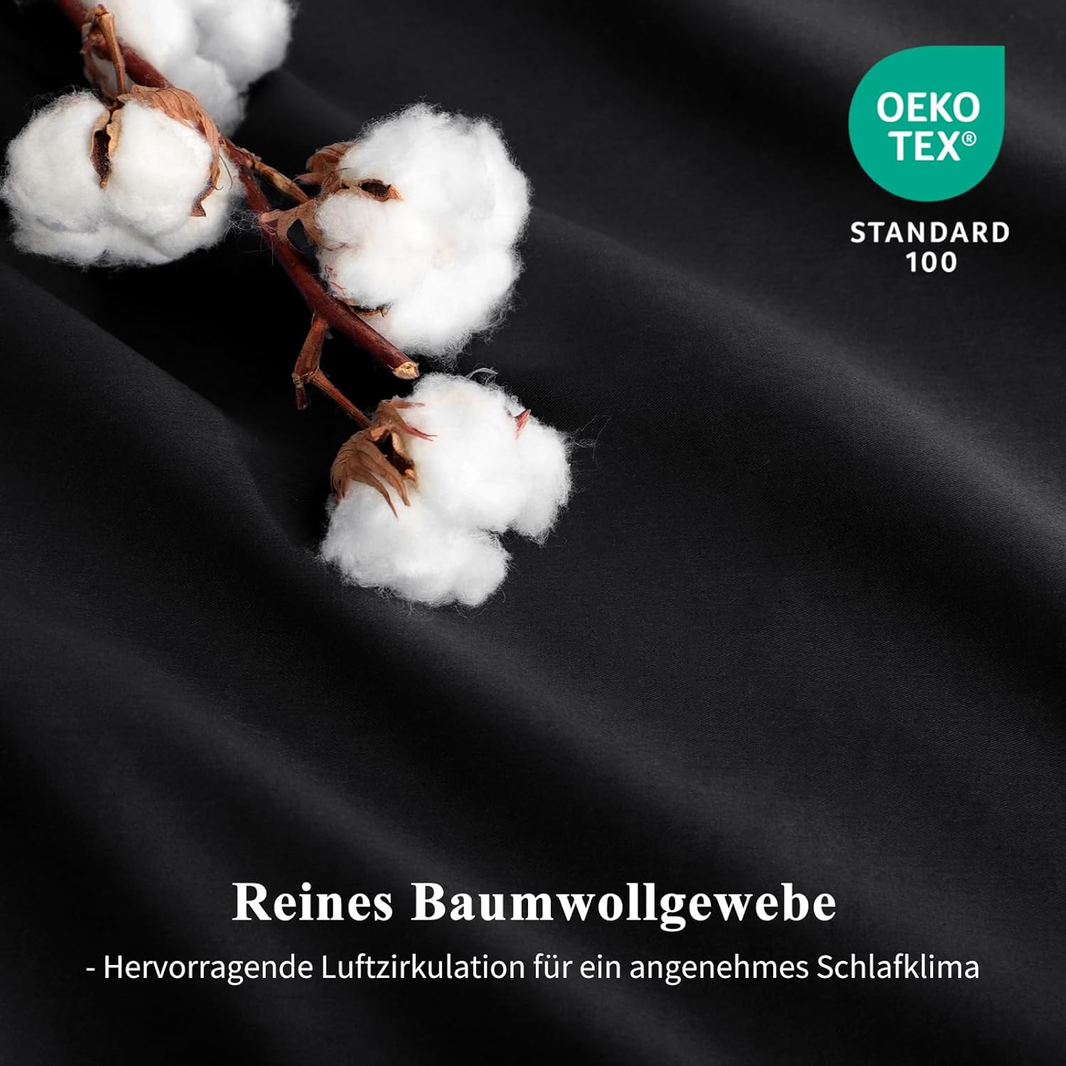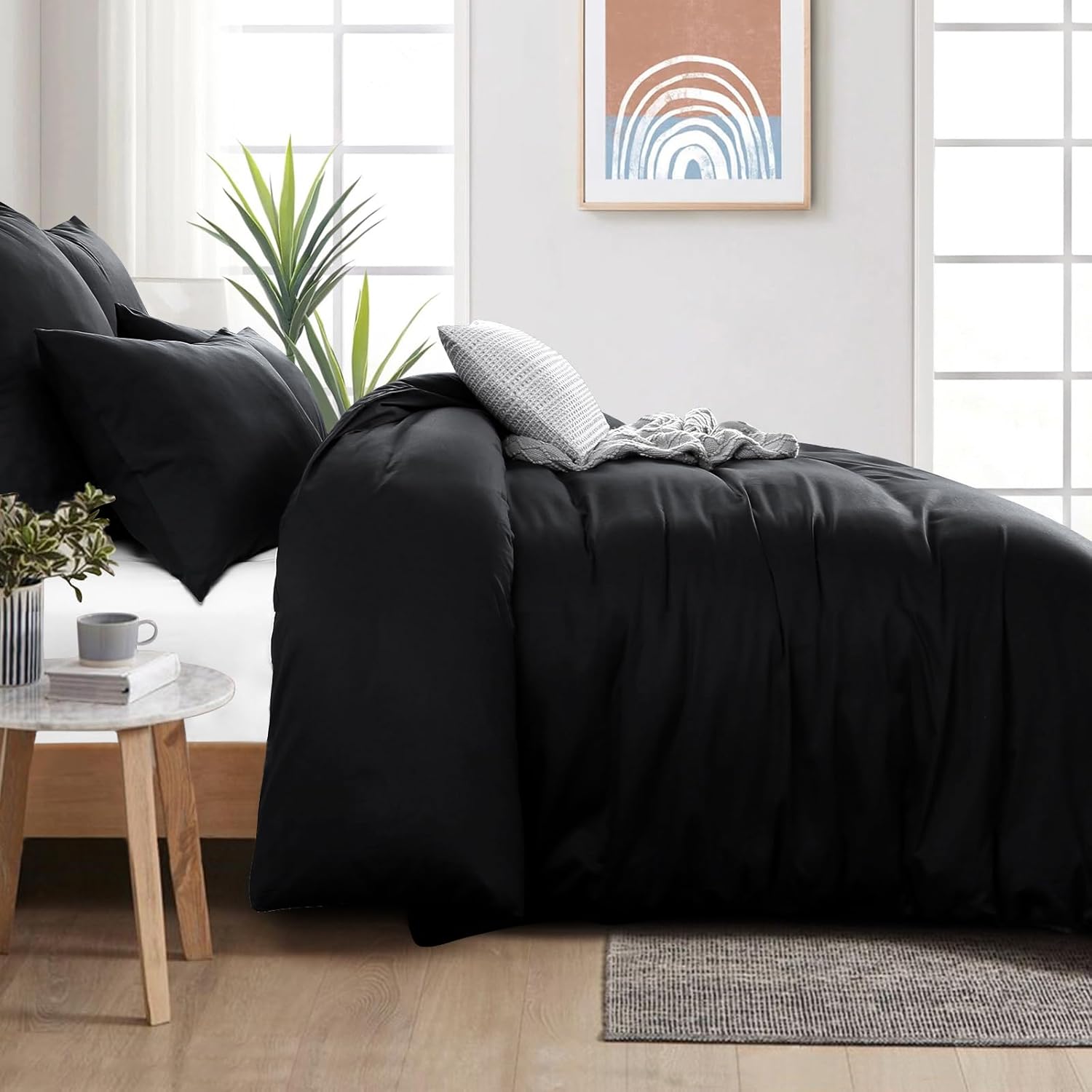 Aisbo Комплект от 3 броя, черно памучно спално бельо, 220 x 240 см, с цип, меко и дишащо