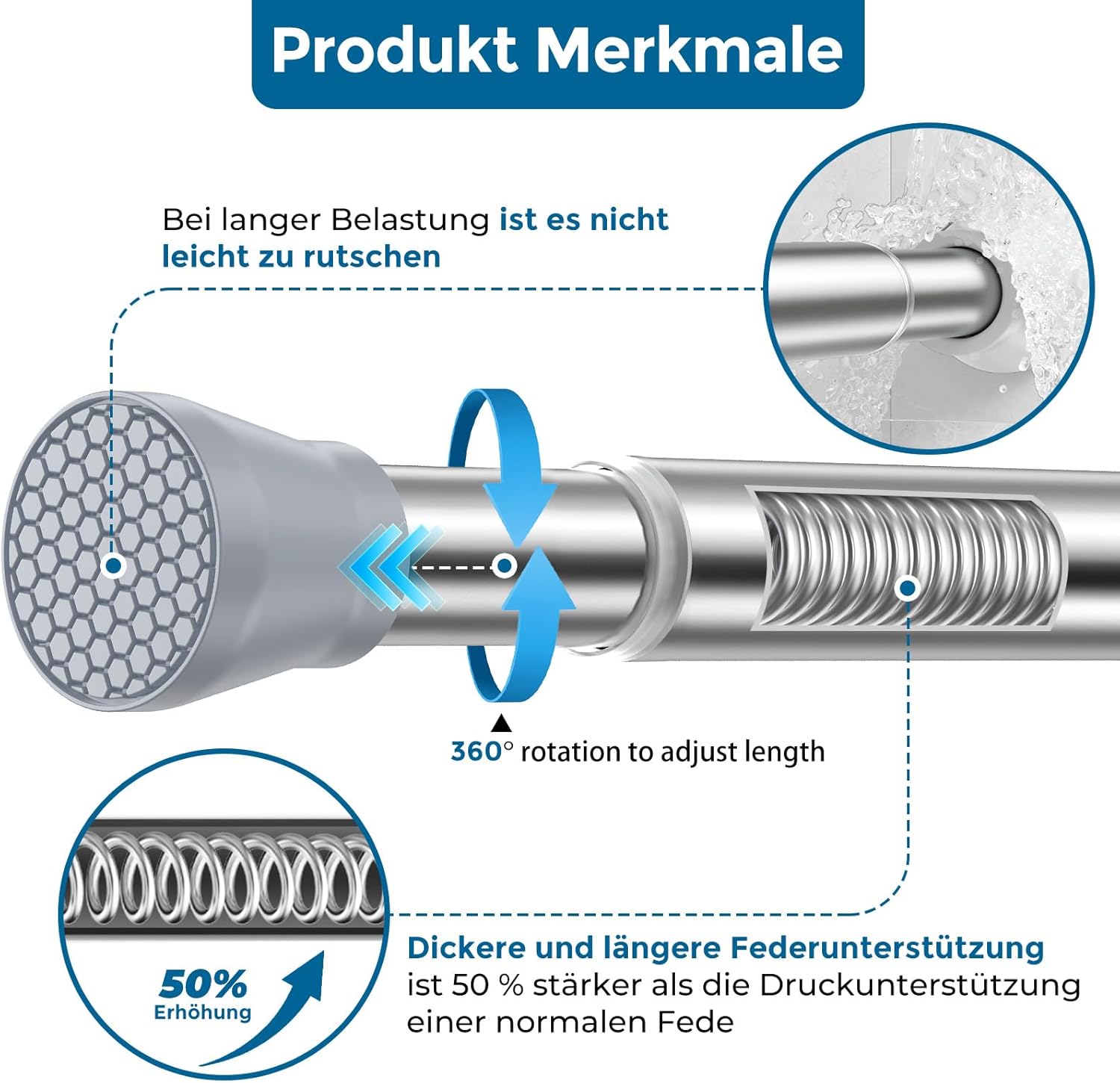 • Универсален: Този разтегателен душ-тръб без пробиване е идеален за душове, бани, шкафове, прозорци, врати и много други. Може да се използва както на закрито, така и на открито.
