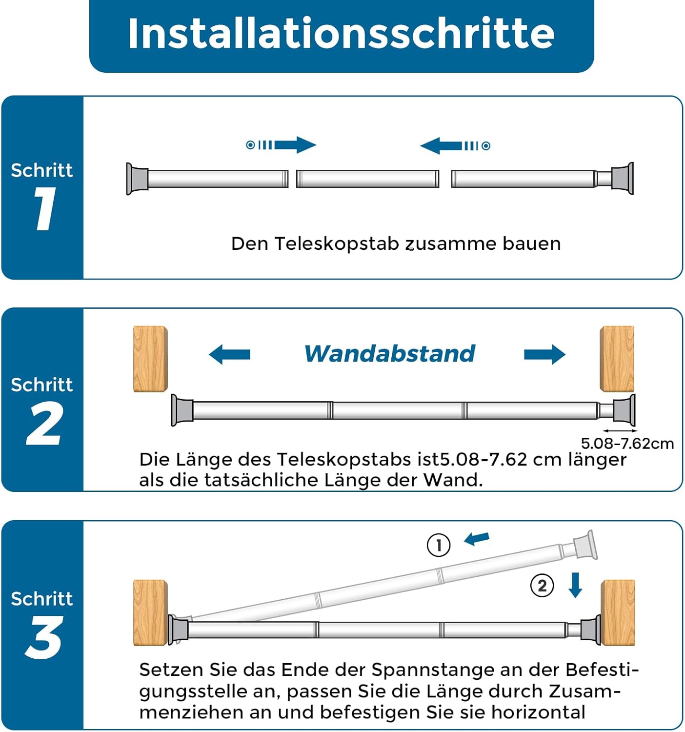 • 【ЛЕСЕН МОНТАЖ】: Монтажът на този пружинен корниз за завеси е бърз и удобен. Просто го завъртете леко, за да го разгънете до желаната дължина. Дори и да ги монтирате сами, ще ги сглобите за нула време.