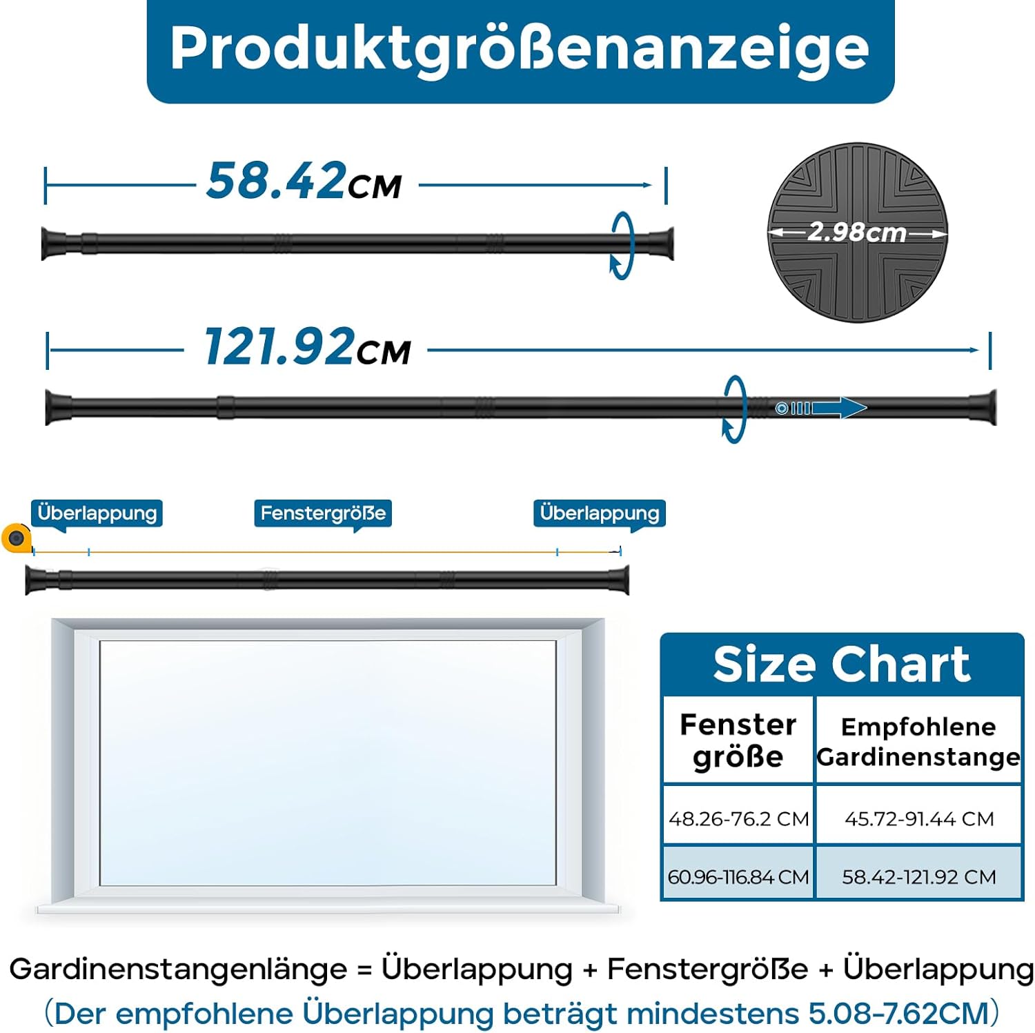 • Спецификация на пакета: Този пакет съдържа корниз за завеси без пробиване, който е гъвкаво регулируем в диапазона 60-120 см. За перфектно прилягане препоръчваме използването им в посочения диапазон 60-120 см.