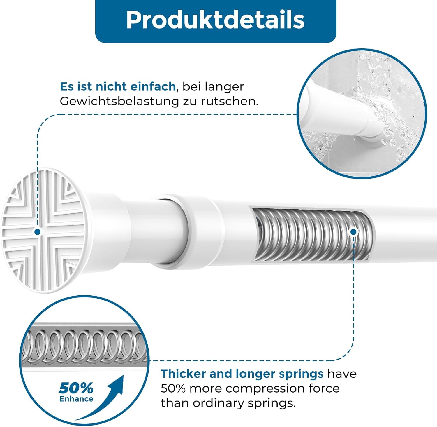 • 【ЛЕСЕН МОНТАЖ】: Монтажът на този пружинен корниз за завеси е бърз и удобен. Просто го завъртете леко, за да го разгънете до желаната дължина. Дори и да ги монтирате сами, ще ги сглобите за нула време.