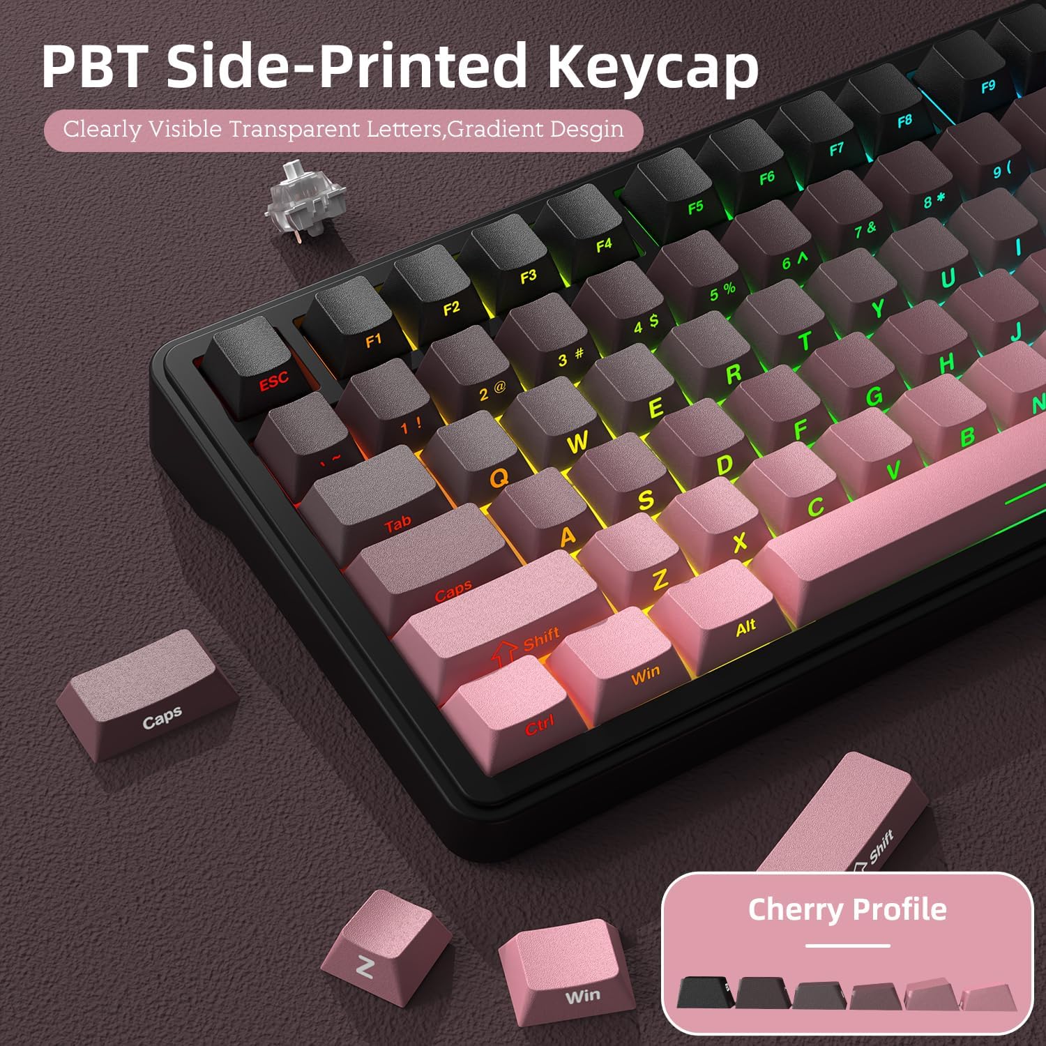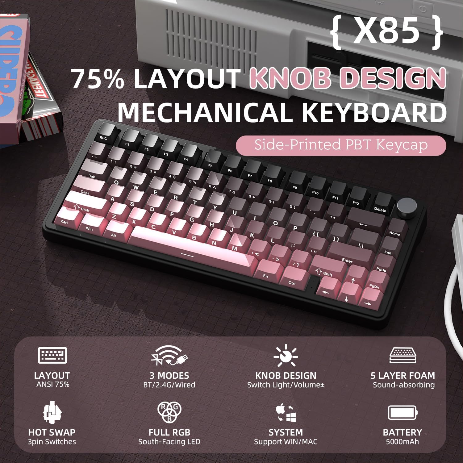 AJAZZ x Attack Shark X85 Механична клавиатура, 75% безжична геймърска клавиатура с бутони, 5-слойна подложка, странично отпечатана PBT капачка на клавишите, BT5.1/2.4GHz/USB-C, Hot-Swap линеен превключвател, RGB, за PC, Mac