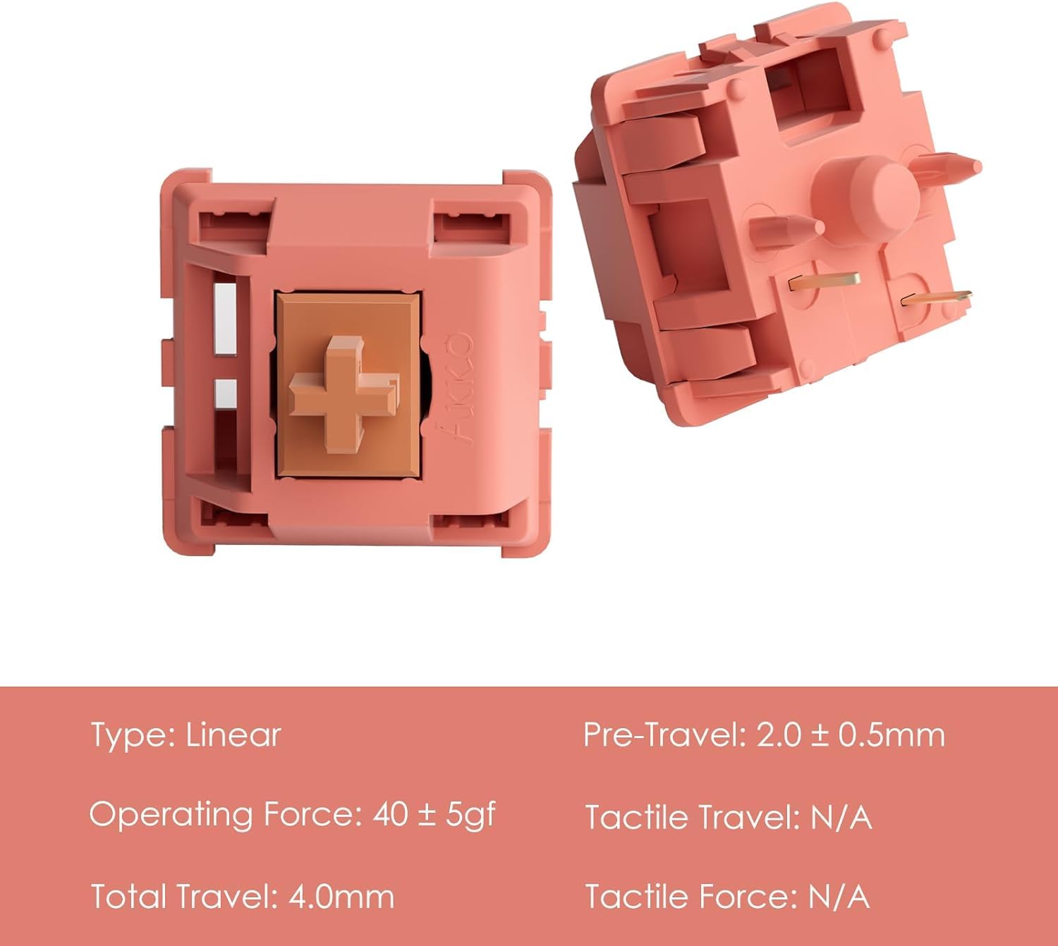 Akko механични превключватели за клавиатура, линейни превключватели, 5-пинови 40gf, RGB LED слот, MX превключвател за DIY комплект/геймърска Barebone клавиатура (опаковка от 45, розово дърво)