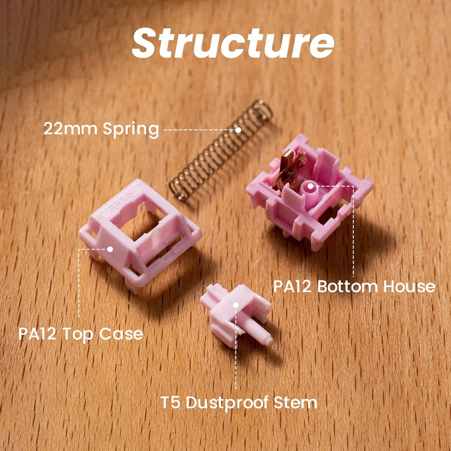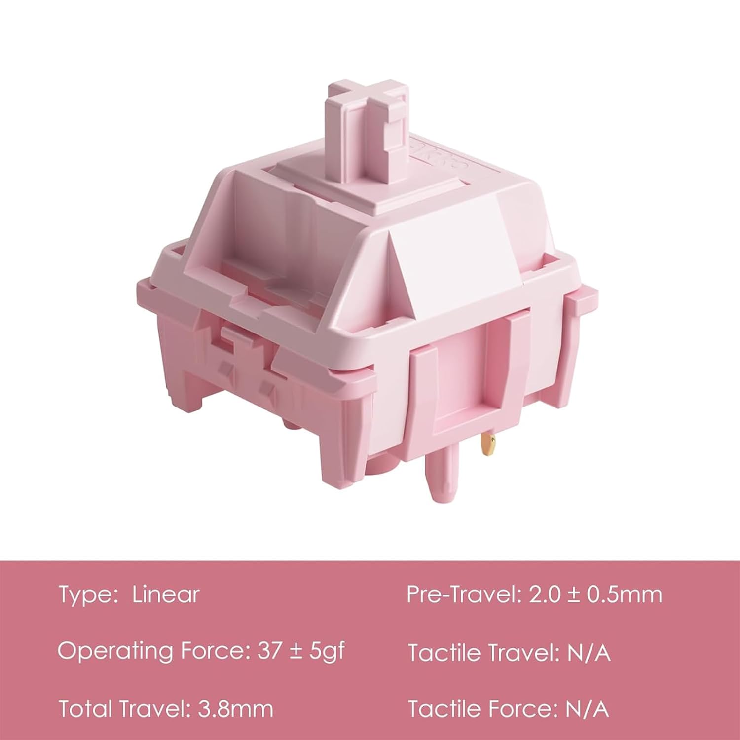 Akko Stellar Rose превключвател за механична геймърска клавиатура, 5-пинови 37gf линейни превключватели, предварително смазани ключове, персонализирани превключватели за комплект „Направи си сам“ (45 части, Stellar Rose)