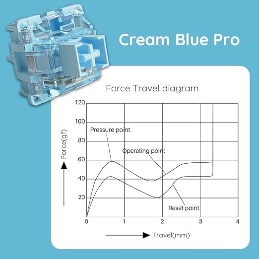 • Чист звуков профил: Превключвателят поддържа класическия и носталгичен пълен ход от 4,0 мм и осигурява характерен дълбок звук, както и приятно тракащ звуков профил върху повечето материали за клавиатури с тънък слой фабрично смазване.