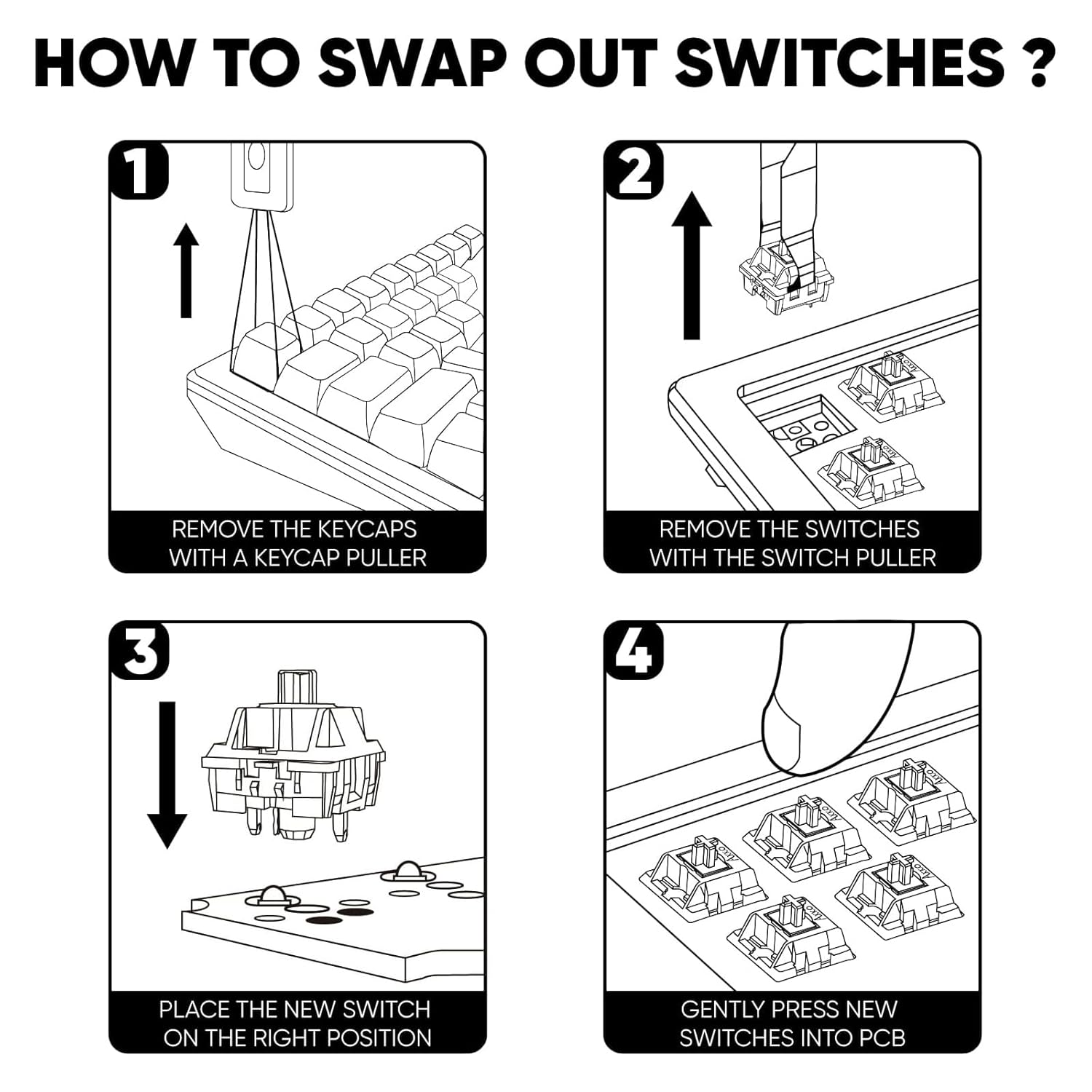 • Интегриран слот за LED: Батерийните клавиатурни превключватели са оборудвани със слот за LED, готов за модификация/монтаж на LED, и са съвместими с SMD (LED под превключвателя), което ви дава гъвкавостта да създадете персонализирана клавиатура, която се откроява от тълпата.