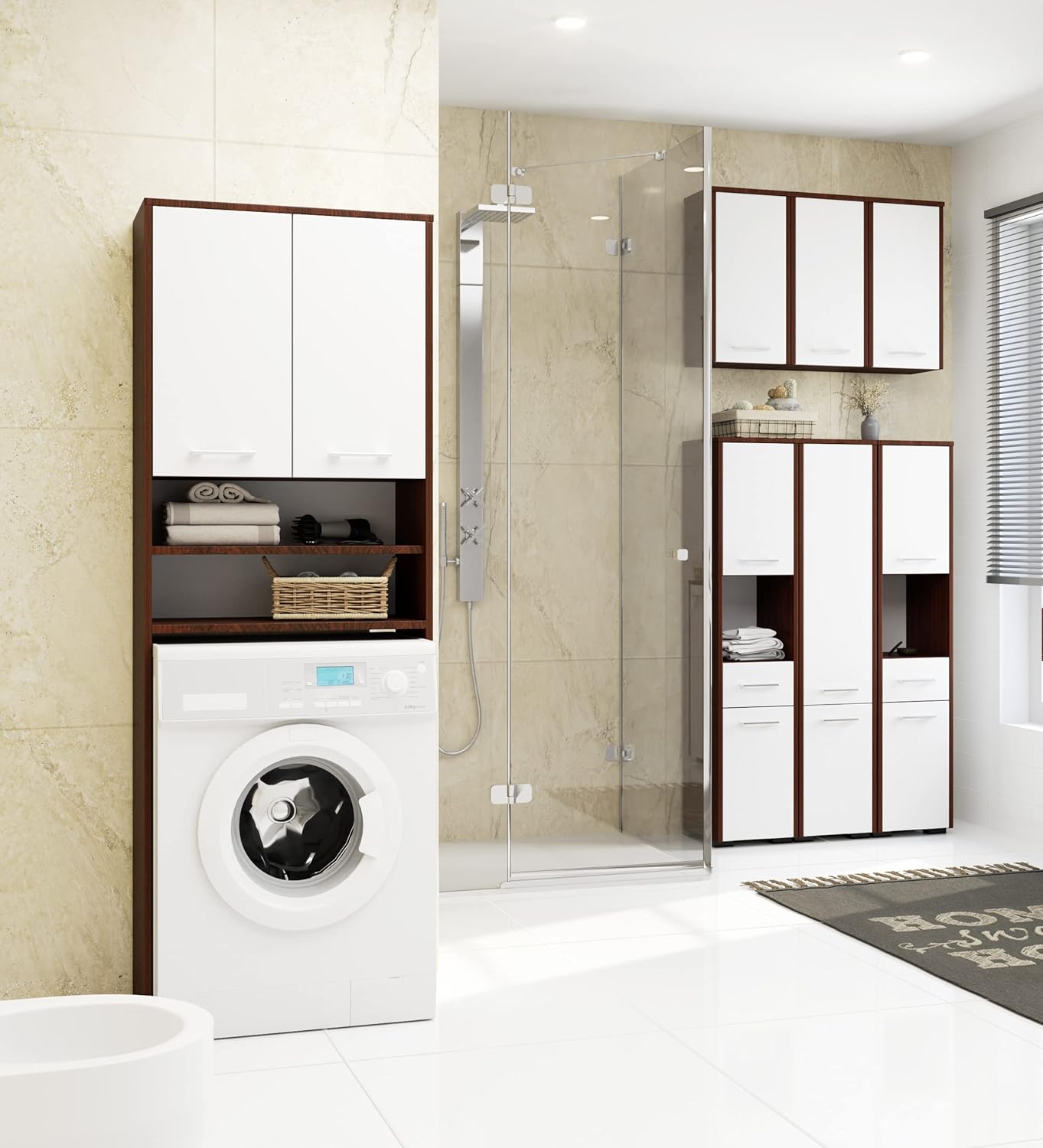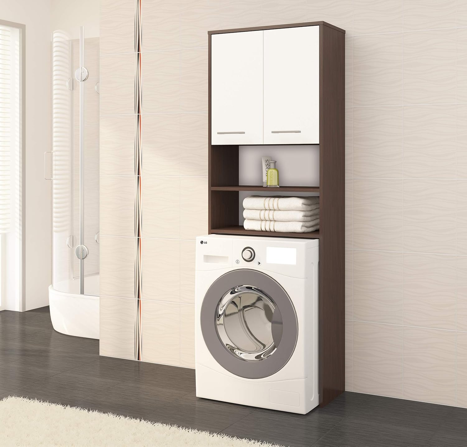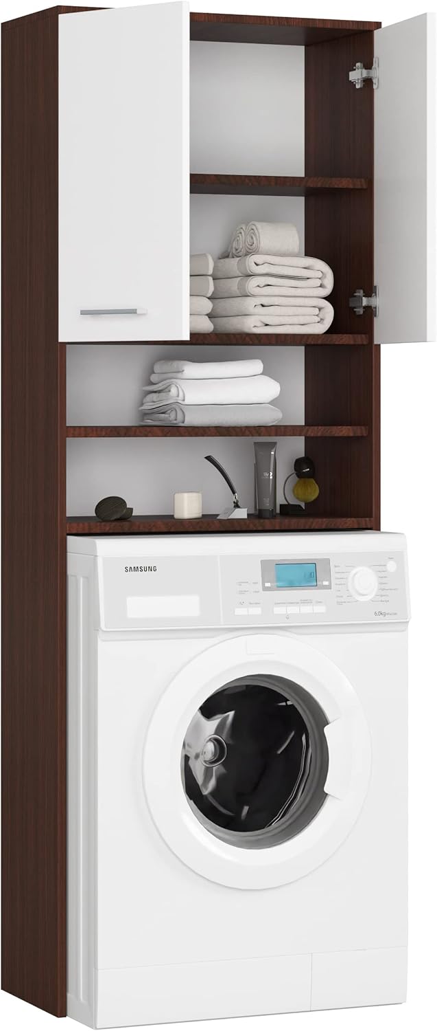 AKORD FIN Шкаф за пералня 64 см с 2 врати Висящ шкаф за пералня Ш 64 x В 180 x Д 30 см Тегло 29.50 кг Венге/Бяло