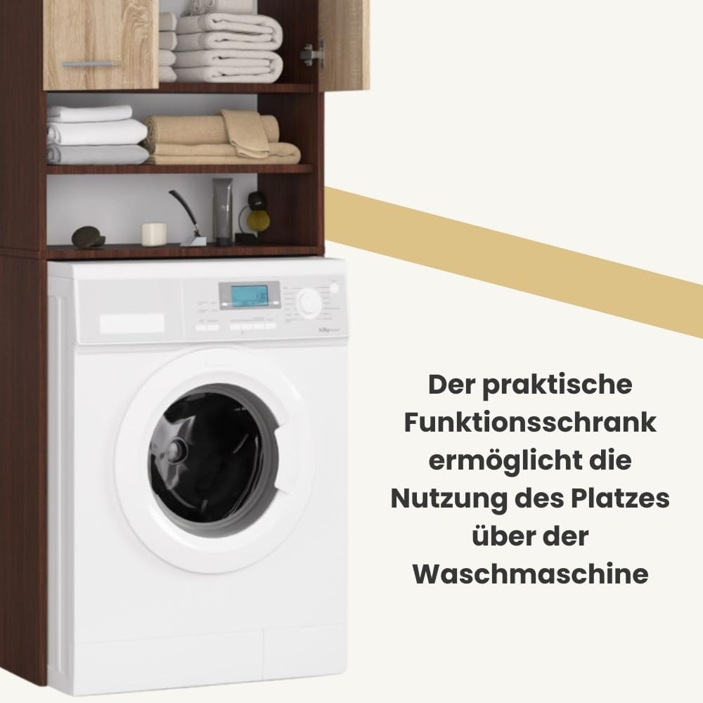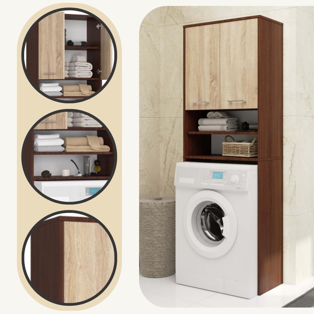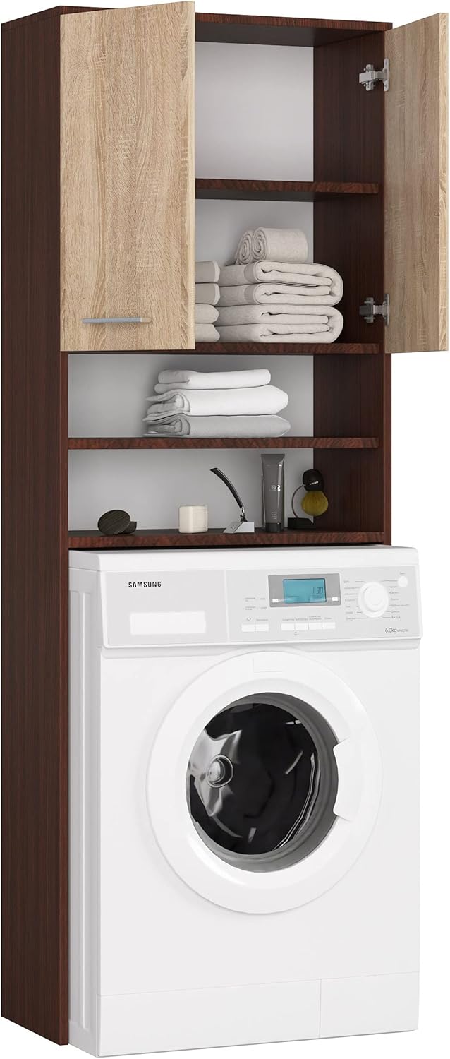 AKORD FIN Шкаф за пералня 64 см с 2 врати Висящ шкаф за пералня Ш 64 x В 180 x Д 30 см Тегло 29,50 кг Венге/Сонома дъб