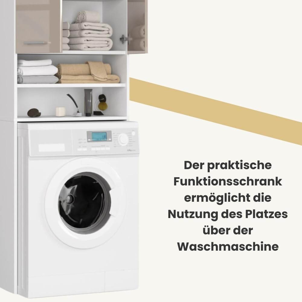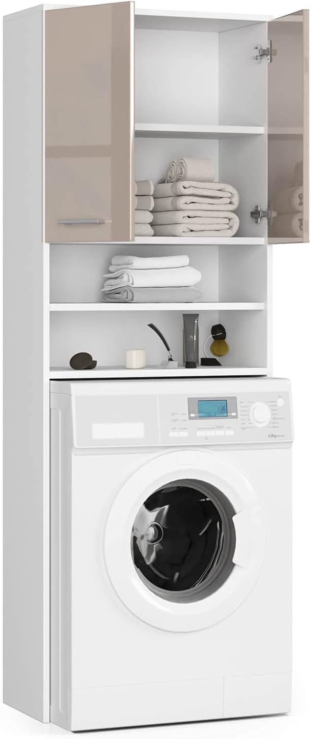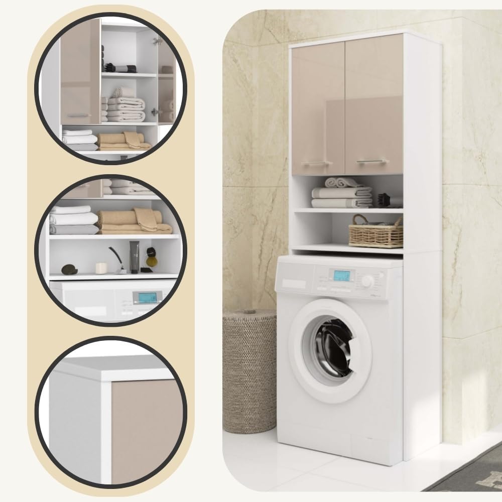 AKORD Шкаф за пералня FIN 64 см с 2 врати Висящ шкаф за пералня Ш 64 x В 180 x Д 30 см Тегло 29.50 кг Бяло Капучино Висок гланц