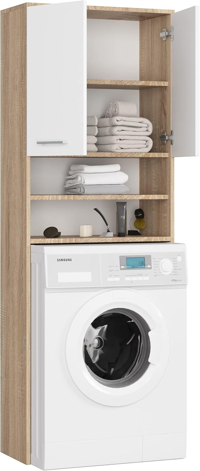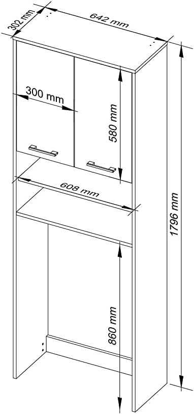 • ЕЛЕГАНТЕН И ПРАКТИЧЕН Шкафът за преобразуване на пералня е с размери 64 см ширина, 180 см височина и 30 см дълбочина и е подходящ за всички стандартни перални или сушилни. С негова помощ ще създадете перфектен ред дори в малки пространства.