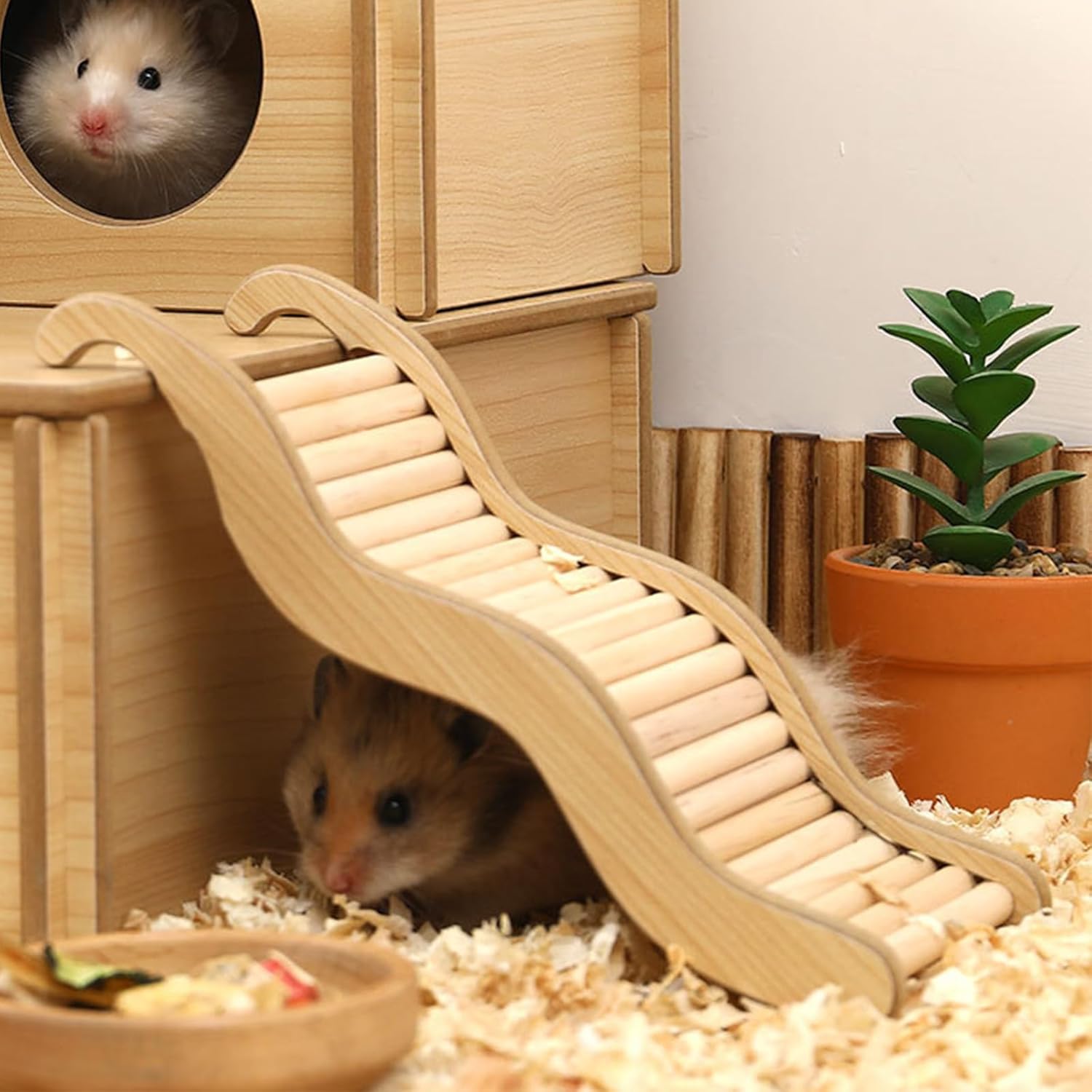 Добавете разнообразие към играта на вашия домашен любимец с тази играчка за хамстер. Експертно изработена от ръчно подбрани оригинални дървесини, тази катереща се стълба осигурява безопасна, органична платформа за малки животни като хамстери, морски свинчета, джербили и плъхове, които да изследват. Уникалният ѝ вълнообразен дизайн насърчава физическите упражнения и умствената стимулация. С дължина 21 см и ширина 8,5 см, тя се побира удобно във всяка клетка или местообитание и добавя атрактивен декоративен щрих. Вземете тази многофункционална катереща се стълба и поддържайте домашните си любимци здрави, щастливи и активни!