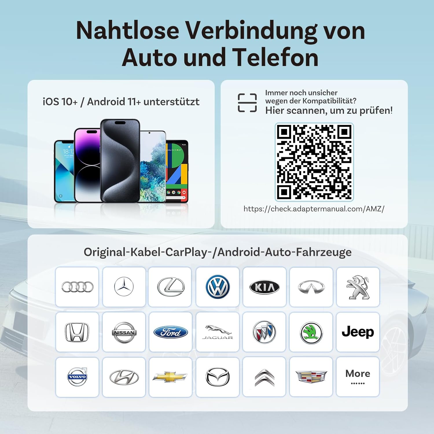 • [Вашият смартфон, вашият избор!] iPhone или Android? Безжичният CarPlay адаптер Ottocast улеснява живота ви. Той поддържа както Wireless CarPlay (iOS 10+), така и Android Auto (Android 11+) – всичко това с един плъгин. Край на компромисите – само функциите, които обичате!