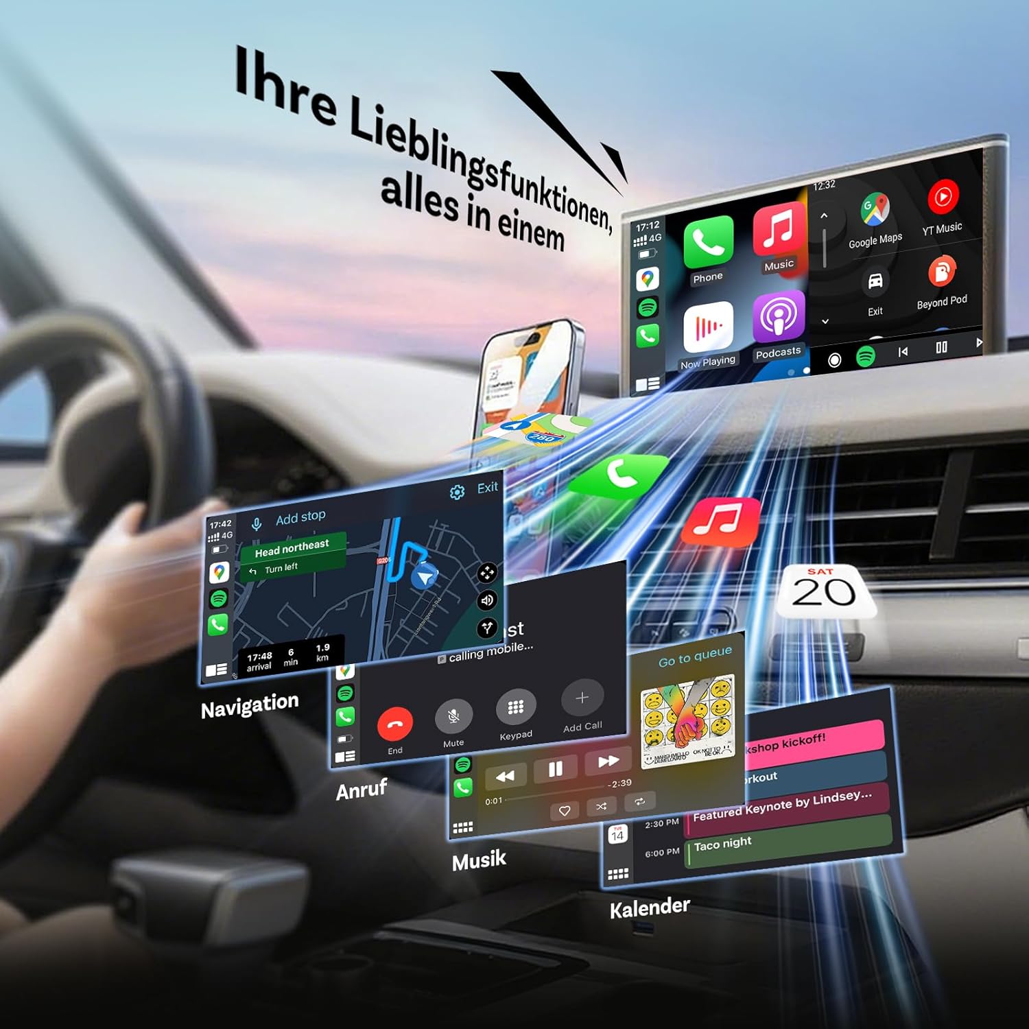 • 【Запазете оригиналното шофиране!】Харесвате ли контролите в колата си? Тогава ги запазете! 2-в-1 безжичният CarPlay и Android Auto адаптер запазва оригиналните въртящи се копчета, сензорния екран и контролите на волана на вашия автомобил. Той е съвместим и със Siri и Google Assistant – така че колата ви да остане умна, без да губи характера си.