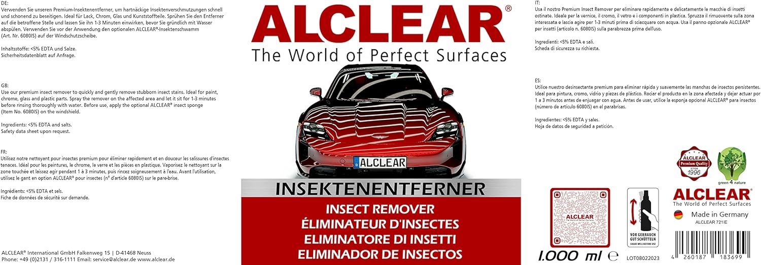 ALCLEAR 721GR е препарат за почистване на стъкла с перлен ефект за стъкла на автомобили и чувствителни повърхности. Ефективно премахва никотинов филм, замъгляване, остатъци от насекоми и пръстови отпечатъци - отвътре и отвън. Подходящ за стъкло, пластмаса, хром и огледала за обратно виждане. Нанася се без следи с микрофибърна кърпа - без повторно полиране. Перленият ефект намалява замърсяванията и поддържа ясна видимост при дъжд или интензивна употреба. Формулата е биоразградима, бутилката от 1000 мл е безопасна за деца и рециклируема. Може да се използва и като добавка за почистващото средство за предно стъкло. Подпомага структурираната грижа за автомобила с надежден ефект - за кола, мотоциклет или каравана. За най-добри резултати се препоръчва употребата с кърпа за стъкла ALCLEAR или Dry Miracle (продава се отделно). Предназначен за редовна грижа, ясна видимост и щадящо материалите почистване.