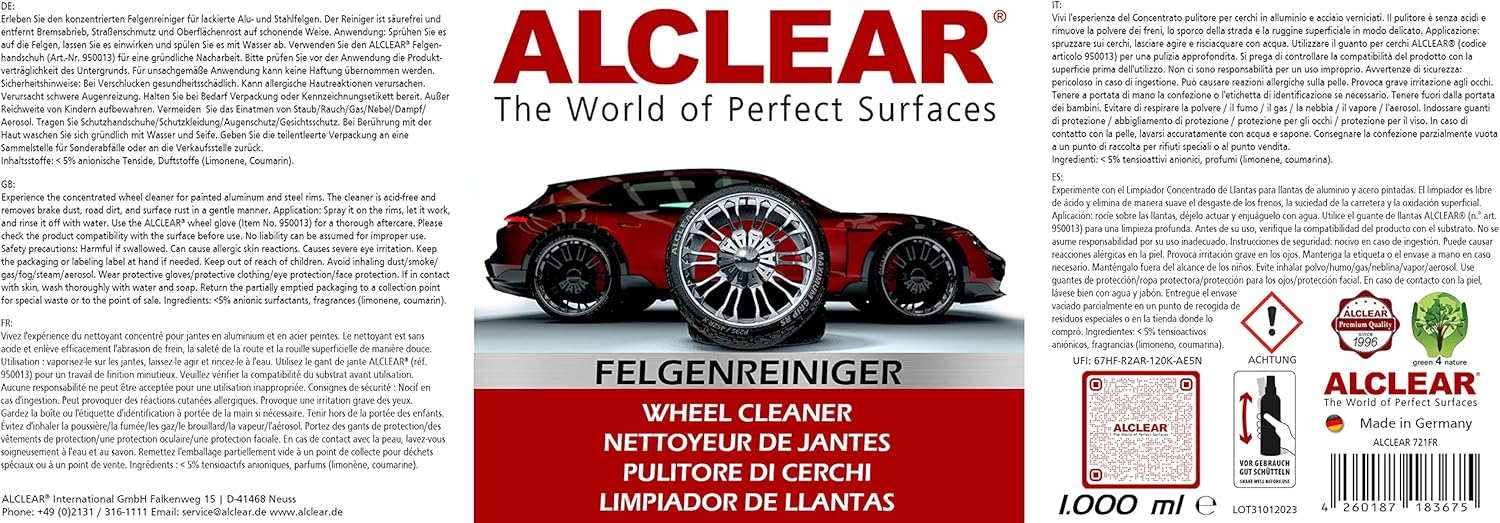 ALCLEAR 721GR е препарат за почистване на стъкла с перлен ефект за стъкла на автомобили и чувствителни повърхности. Ефективно премахва никотинов филм, замъгляване, остатъци от насекоми и пръстови отпечатъци - отвътре и отвън. Подходящ за стъкло, пластмаса, хром и огледала за обратно виждане. Нанася се без следи с микрофибърна кърпа - без повторно полиране. Перленият ефект намалява замърсяванията и поддържа ясна видимост при дъжд или интензивна употреба. Формулата е биоразградима, бутилката от 1000 мл е безопасна за деца и рециклируема. Може да се използва и като добавка за почистващото средство за предно стъкло. Подпомага структурираната грижа за автомобила с надежден ефект - за кола, мотоциклет или каравана. За най-добри резултати се препоръчва употребата с кърпа за стъкла ALCLEAR или Dry Miracle (продава се отделно). Предназначен за редовна грижа, ясна видимост и щадящо материалите почистване.