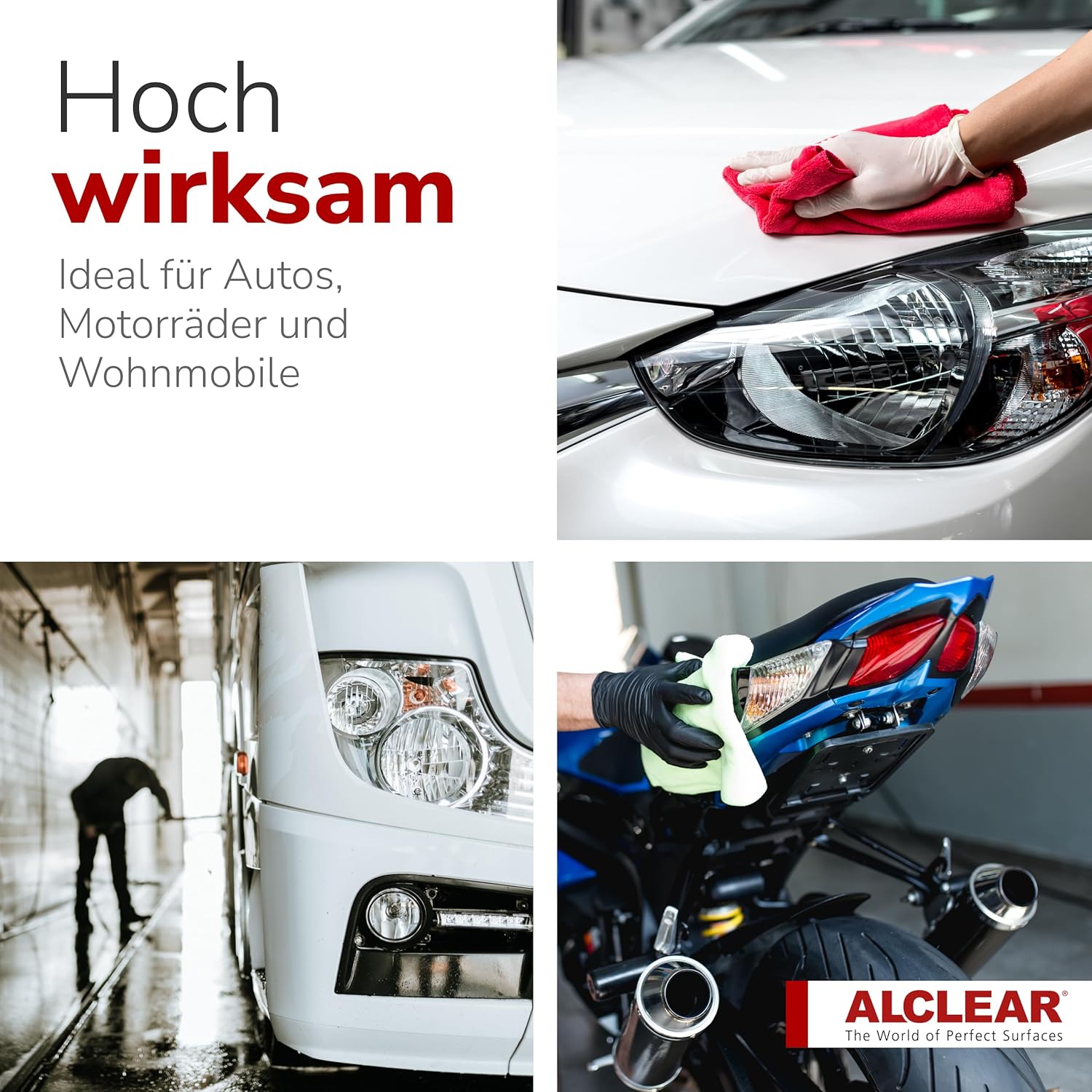 ALCLEAR 721GR е препарат за почистване на стъкла с перлен ефект за стъкла на автомобили и чувствителни повърхности. Ефективно премахва никотинов филм, замъгляване, остатъци от насекоми и пръстови отпечатъци - отвътре и отвън. Подходящ за стъкло, пластмаса, хром и огледала за обратно виждане. Нанася се без следи с микрофибърна кърпа - без повторно полиране. Перленият ефект намалява замърсяванията и поддържа ясна видимост при дъжд или интензивна употреба. Формулата е биоразградима, бутилката от 1000 мл е безопасна за деца и рециклируема. Може да се използва и като добавка за почистващото средство за предно стъкло. Подпомага структурираната грижа за автомобила с надежден ефект - за кола, мотоциклет или каравана. За най-добри резултати се препоръчва употребата с кърпа за стъкла ALCLEAR или Dry Miracle (продава се отделно). Предназначен за редовна грижа, ясна видимост и щадящо материалите почистване.