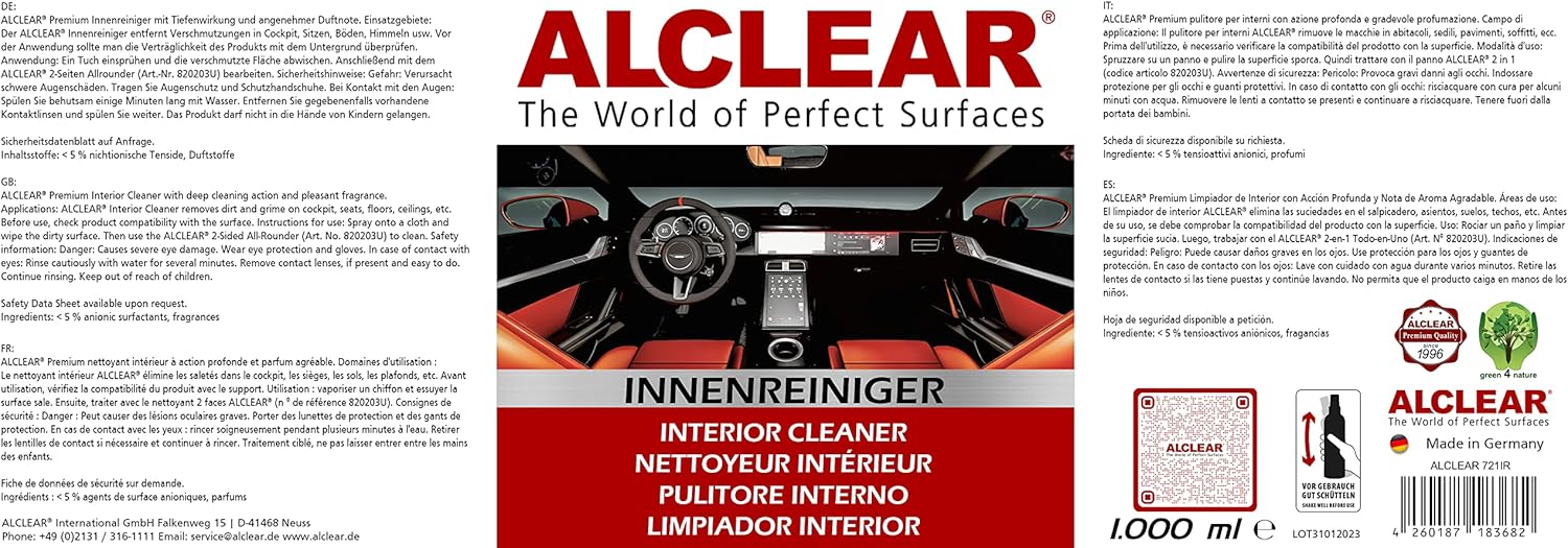 Със спрея за почистване на джанти ALCLEAR 721FR получавате практично решение за цялостно почистване на джанти. Формулата без киселини е нежна към материалите и подходяща за алуминиеви и стоманени джанти. Благодарение на адаптирания състав, спреят прилепва и към вертикални повърхности и позволява удължено време на експозиция. Вграден цветен индикатор показва кога почистващият препарат може да се отмие чрез промяна на цвета. Премахват се спирачен прах, ръжда и пътни замърсявания. Бутилката от 1000 мл е предназначена за многократно приложение и е подходяща както за редовна грижа за автомобила, така и за професионално почистване. Просто напръскайте, оставете да действа и изплакнете - без агресивни съставки.