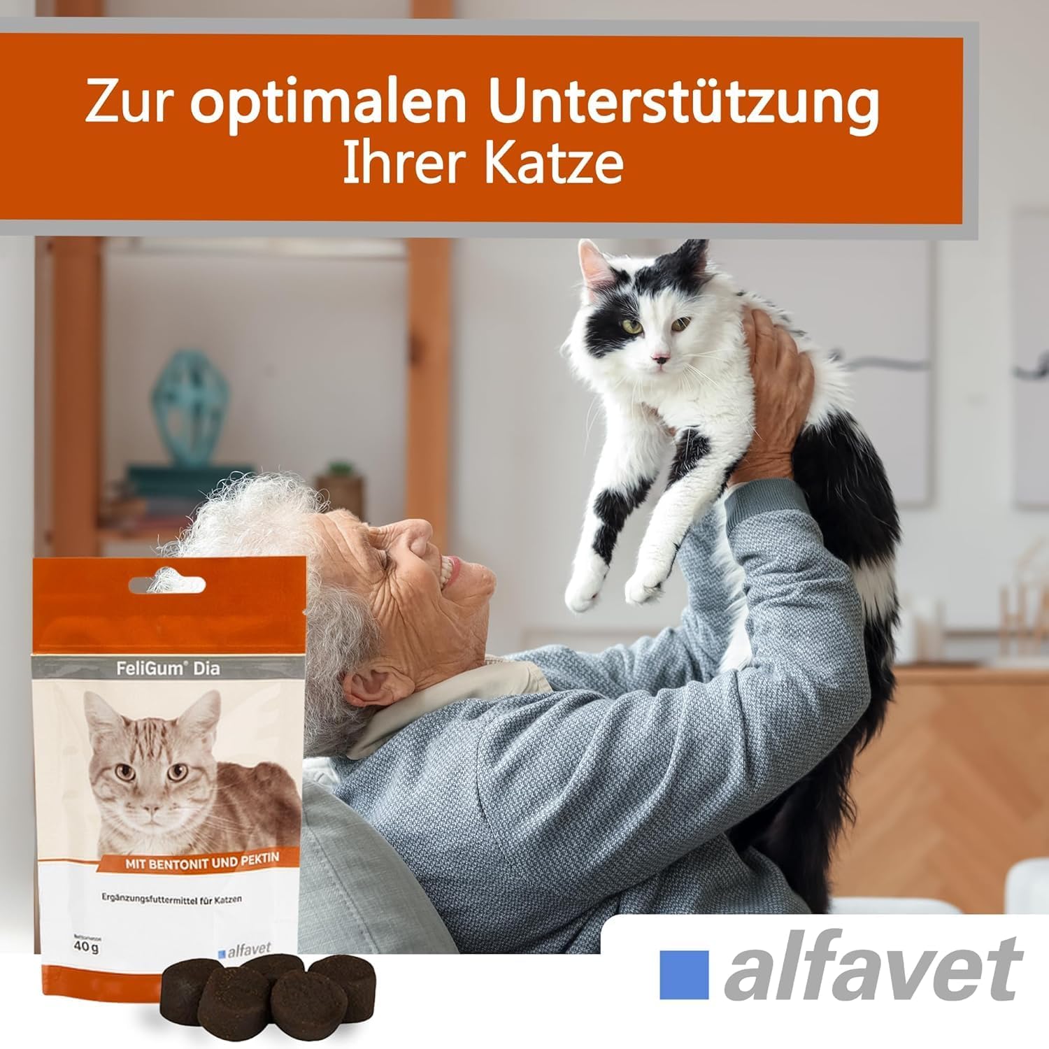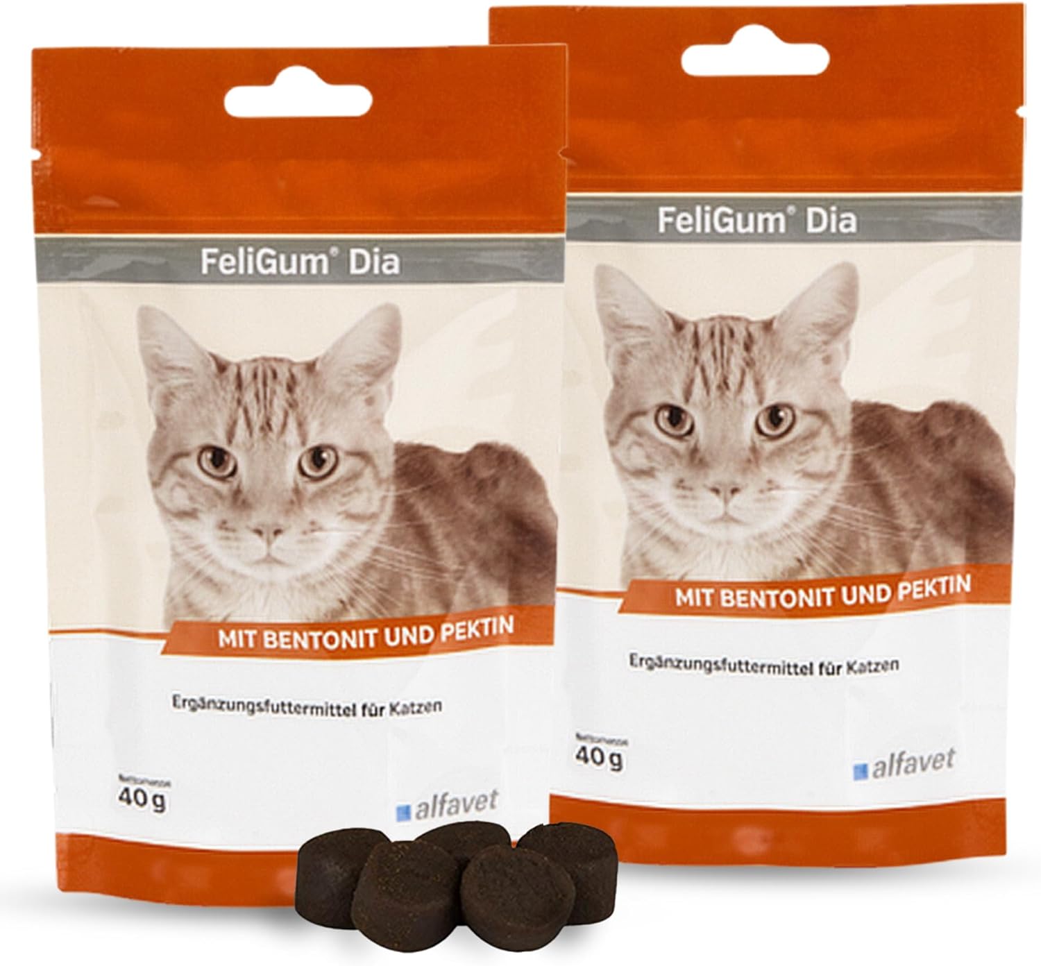 Препоръка за хранене: Давайте самостоятелно или с храна. За употреба по време на и след остра диария. Котки до 3 кг: 1 дъвчаща таблетка два пъти дневно. Котки над 3 кг: 2 дъвчащи таблетки два пъти дневно. Дозата може да се увеличи, ако е необходимо. По време на прилагане на FeliGum® Dia трябва да има на разположение много прясна вода. Препоръчителната продължителност на хранене трябва да се определи от ветеринарен лекар. Препоръчително е да се консултирате с ветеринарен лекар преди хранене.