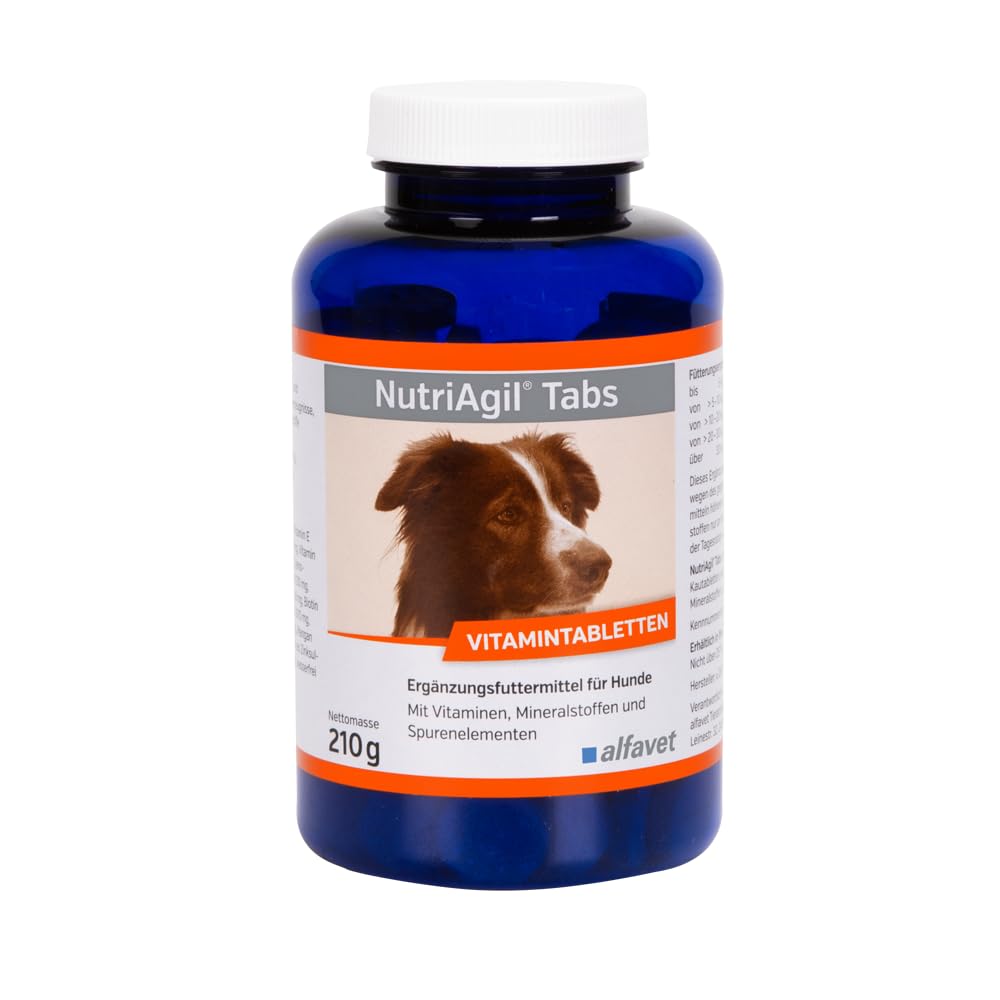 Таблетките Alfavet NutriAgil са допълваща храна за кучета. Тези вкусни дъвчащи таблетки са лесни за употреба. Те съдържат витамини, минерали и микроелементи. NutriAgil Tabs са вкусни дъвчащи таблетки, които допълват диетата с витамини, минерали и микроелементи. Кутия от 210 г (приблизително 140 дъвчащи таблетки по 1,5 г).