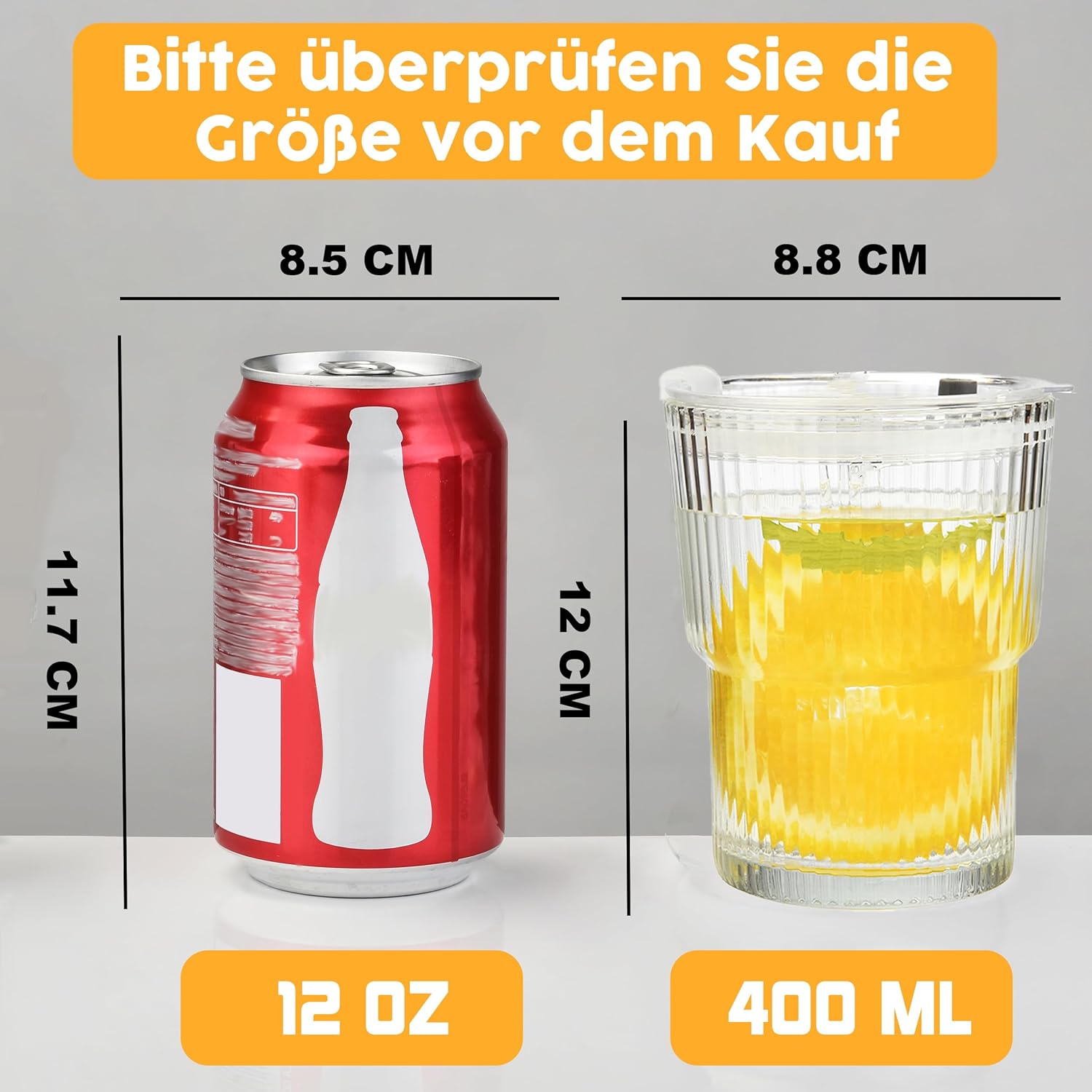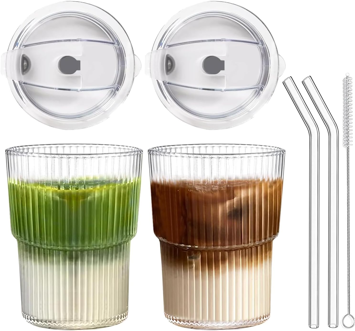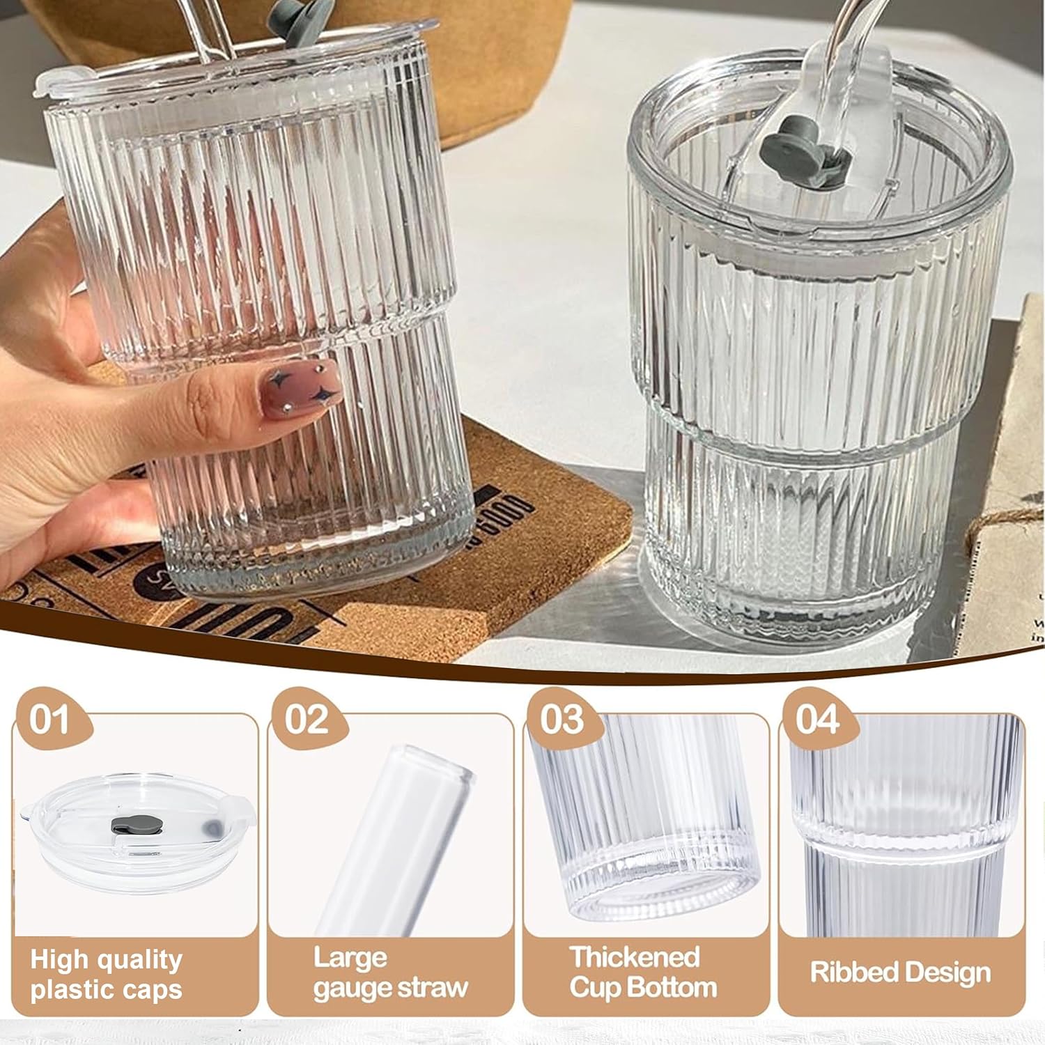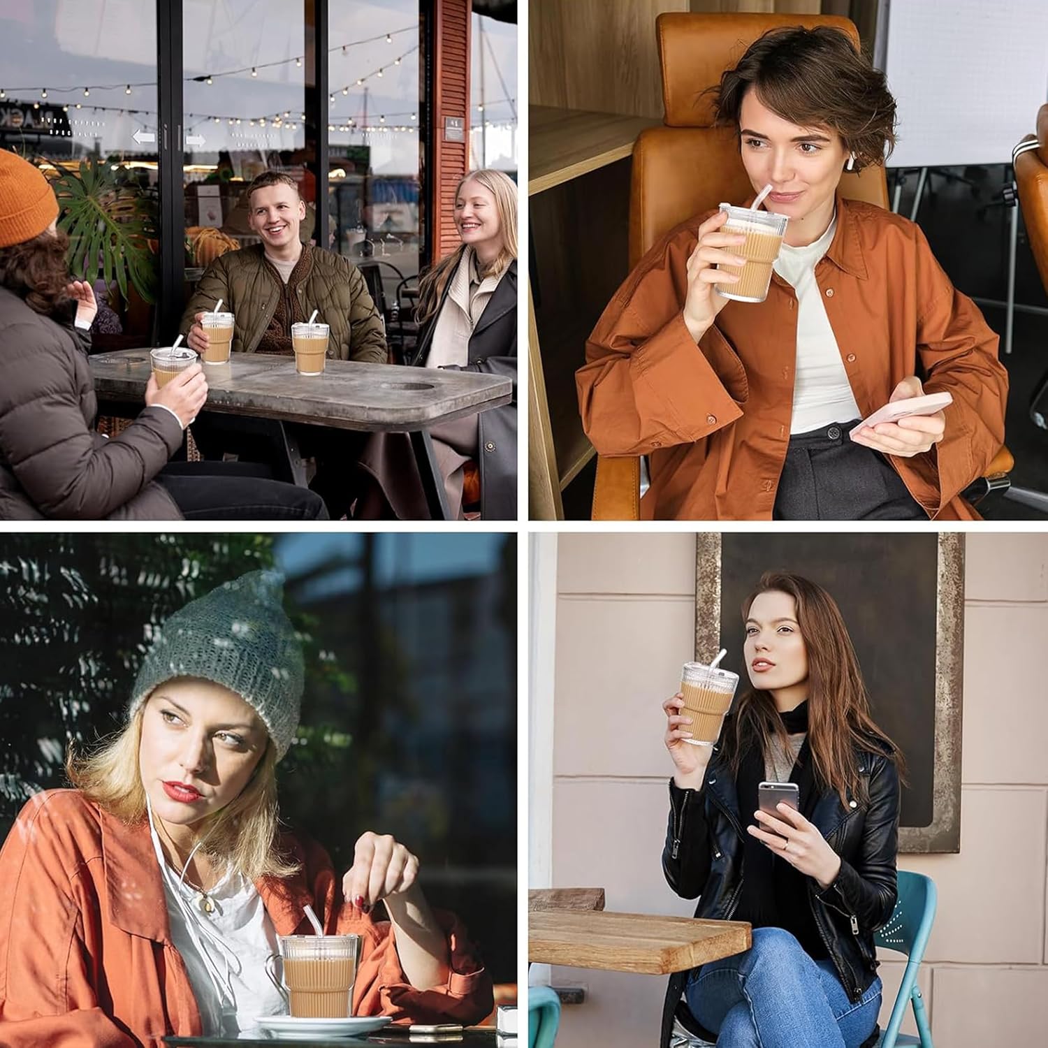 • Елегантен дизайн: Този комплект за пиене със сламки включва 2 стъклени чаши, 2 стъклени сламки, 2 капачки за чаши и 2 четки за сламки. Дизайнът на чашите за кафе се характеризира с прости и плавни линии. Кристално чистото стъкло е устойчиво на надраскване и счупване и ще ви съпътства дълго време, идеално за наслаждаване на вашето кафе. Идеално е за топли и студени напитки като кафе, чай с мляко, чай, газирана вода и плодови сокове.