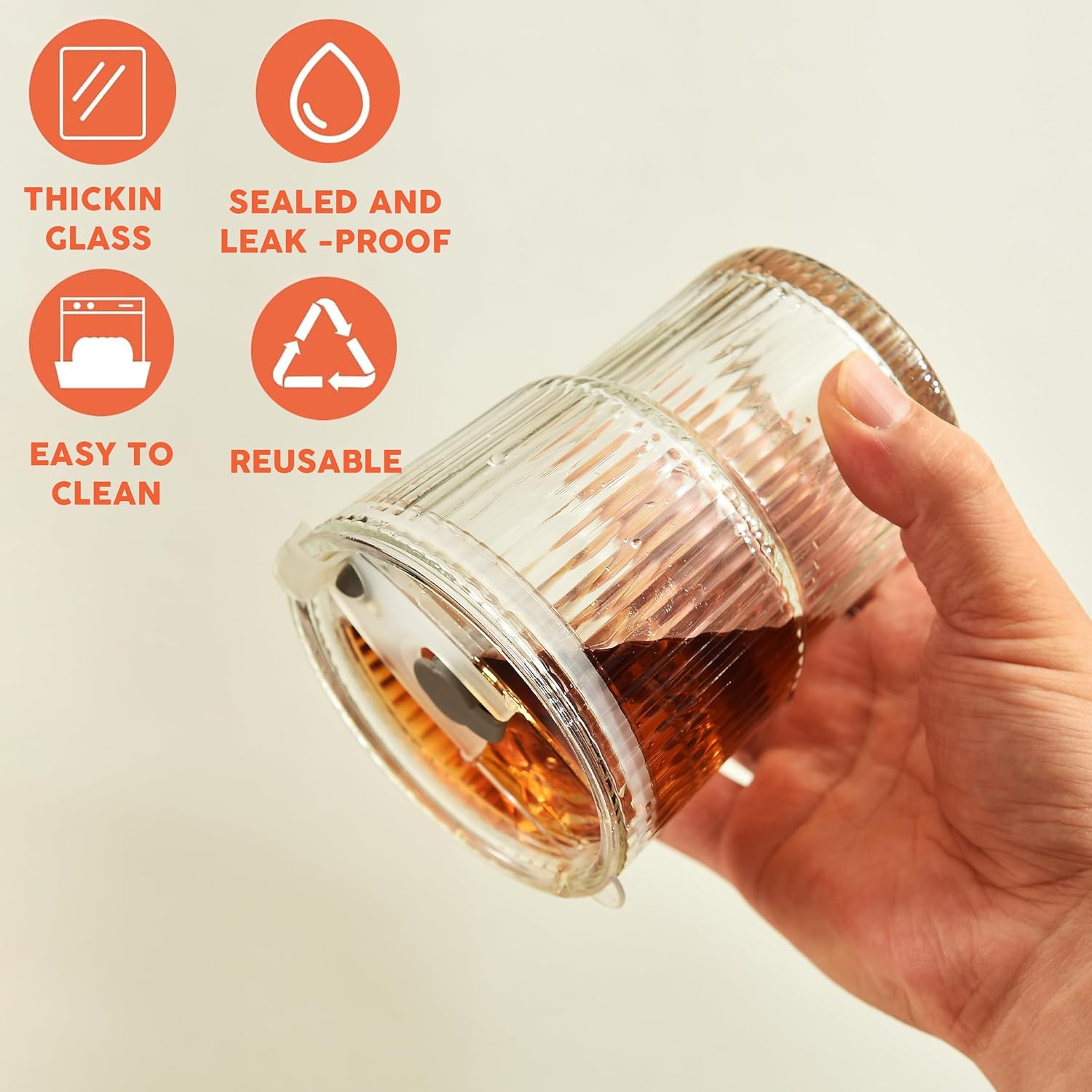 • Три начина за пиене: Капакът има два отвора за пиене, което ви позволява да пиете директно от чашата или през стъклената сламка. Разбира се, можете също да махнете капака и сламката и да използвате чашата като обикновена чаша, за да отговаряте на различните си нужди.