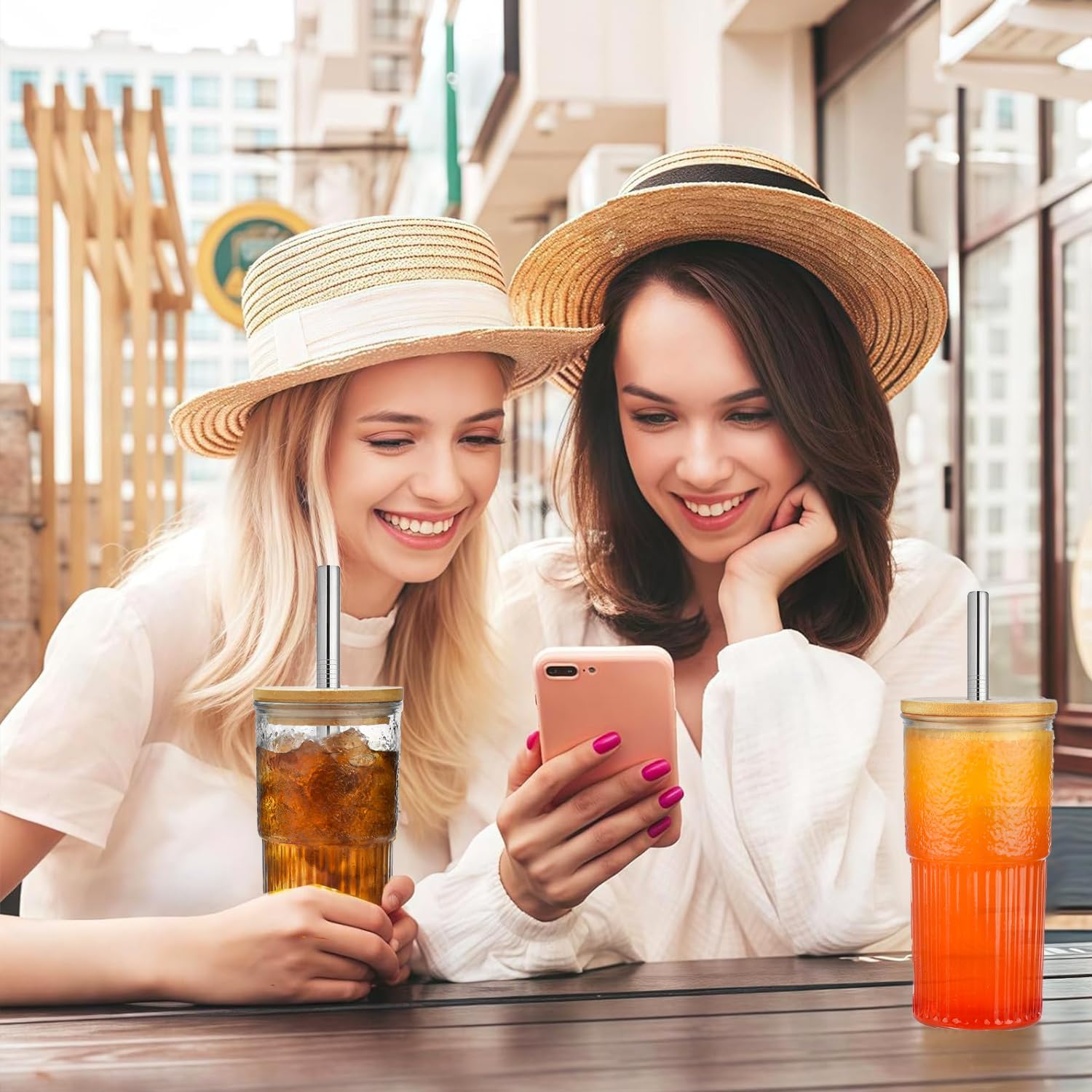 • Семпъл и стилен дизайн: Тази чаша, изработена от висококачествено боросиликатно стъкло с бамбуков капак и сламки от неръждаема стомана, се отличава със стилен и семпъл дизайн. Независимо дали се наслаждавате на освежаваща студена напитка или на гореща чаша кафе, тя добавя нотка елегантност към вашето кулинарно изживяване. Тя е не само практична за употреба, но и отразява вашия начин на живот по екологичен начин.