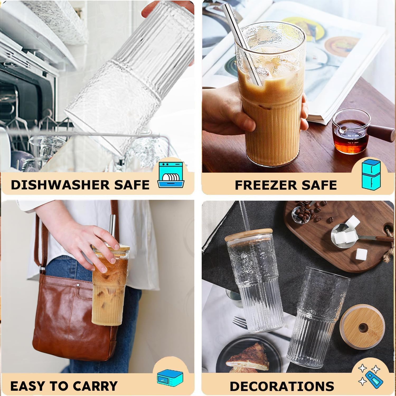 • МАТЕРИАЛ С ПРЕМИУМ КАЧЕСТВО: Това боросиликатно стъкло е изработено от високотемпературно и студоустойчиво боросиликатно стъкло. Използва се в комбинация със сламка за оптимален вкус и без промяна на аромата.