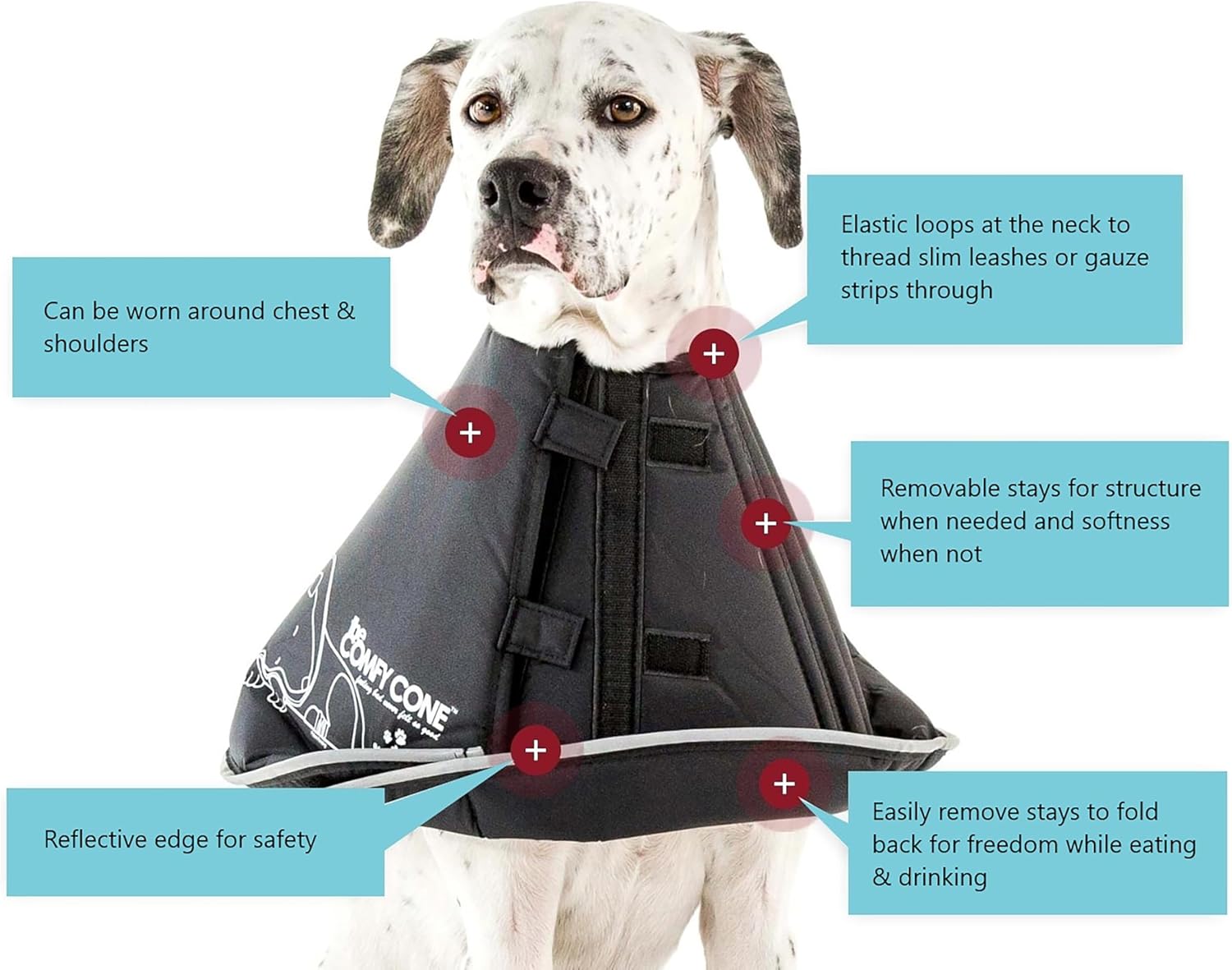 Comfy Cone е мек, конусовиден електронен нашийник, който помага на вашите домашни любимци да се възстановят комфортно от операции, процедури, алергии и инфекциозни заболявания.