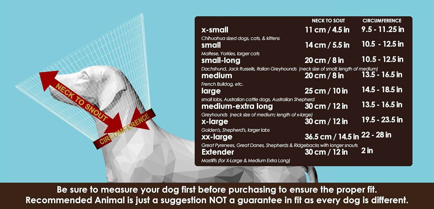 Comfy Cone се предлага с ленти с три размера, което ви позволява да регулирате размера на конуса за сигурно прилягане. Наред с лентите за размери, всеки конус се предлага с подвижни пластмасови подпори, които ви позволяват да определите желаното ниво на структура за вашия домашен любимец. Отстранете подпорите за по-гъвкав конус и ги оставете на място за по-твърда структура, подобна на това, което домашният любимец може да изпита след очна операция. След като подпорите бъдат отстранени, Comfy Cone може дори да се сгъне назад, за да осигури допълнителна свобода на движение при хранене и пиене или за проверка на рани и раздразнения. Всички Comfy Cone имат отразяващ ръб за безопасност и еластични примки на врата за прокарване на нашийника на вашия домашен любимец.