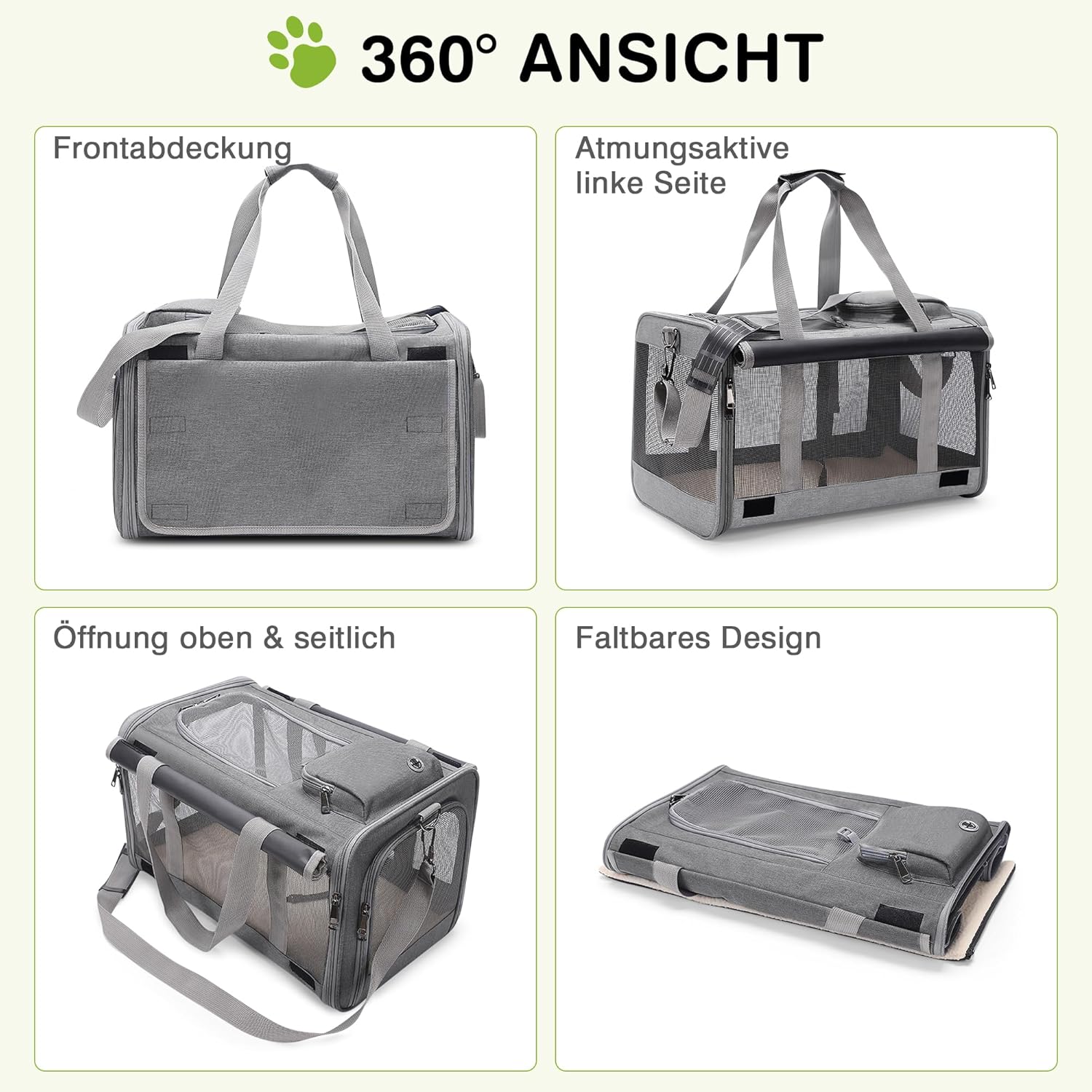 ALLSOPETS Сгъваема кутия за домашни любимци за котки и малки кучета до 9 кг, Дишаща кутия за кучета, Мека транспортна кутия за кола, самолет, пътуване и ветеринарен лекар (мразовито сива)