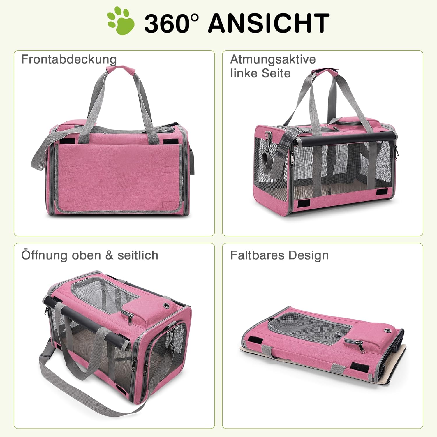 • ПРОСТОРНА ЧАНТА ЗА САМОЛЕТИ С размери 47 x 30 x 30 см, тази чанта за превоз на кучета предлага достатъчно място за котки, малки кучета, кученца или зайци до 9 кг. Идеална е за пътуване със самолет, пътуване с кола, пътуване с влак или посещения при ветеринарен лекар и отговаря на изискванията за ръчен багаж на повечето авиокомпании.